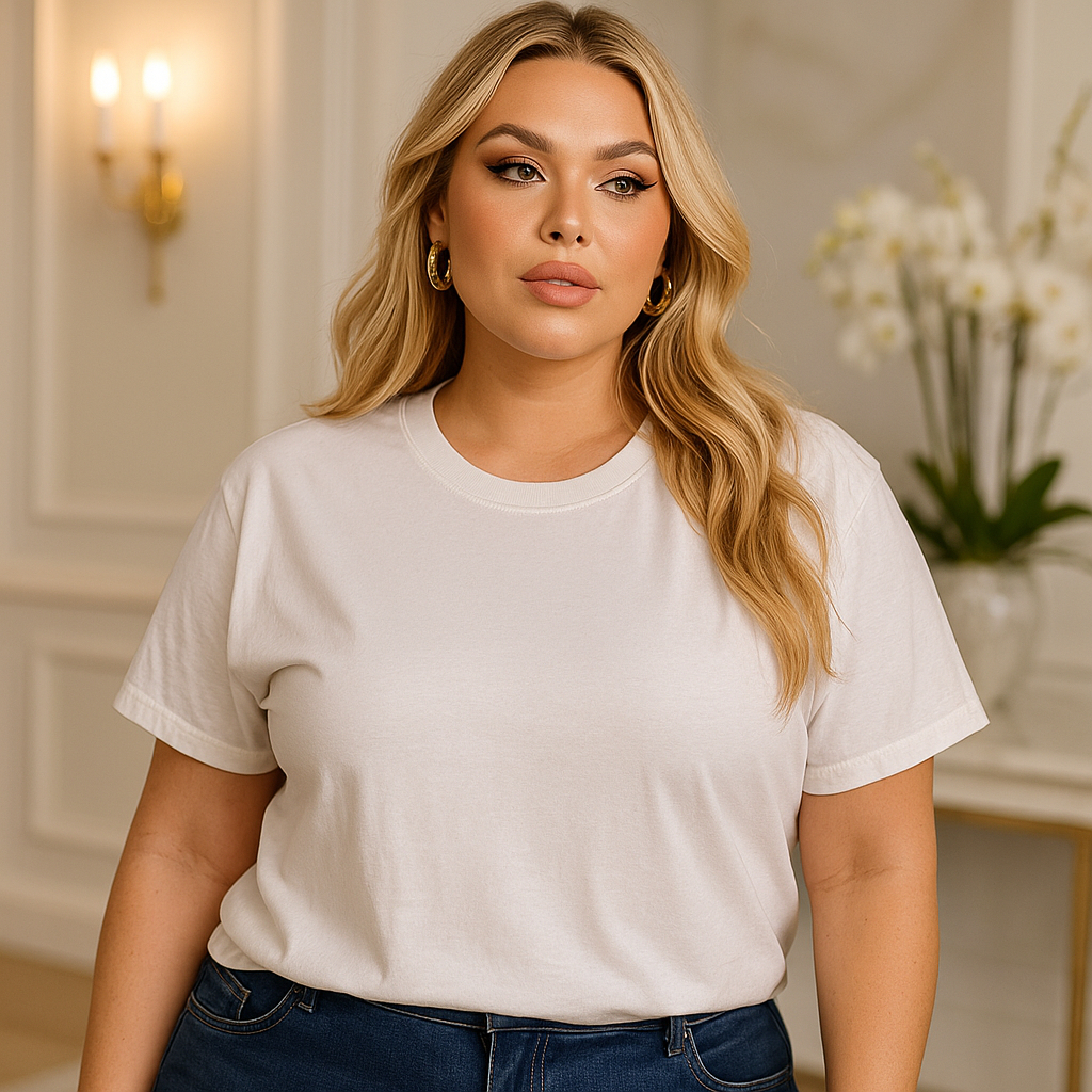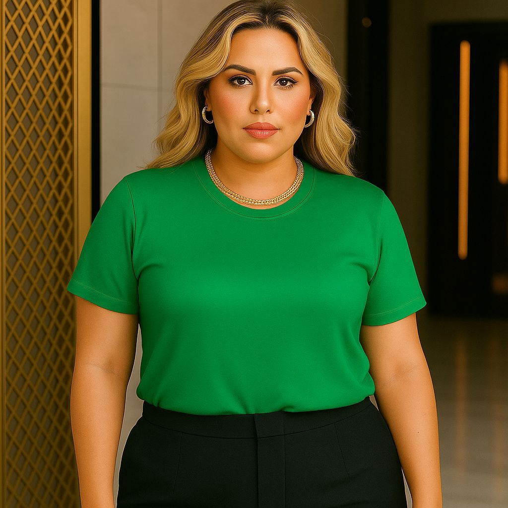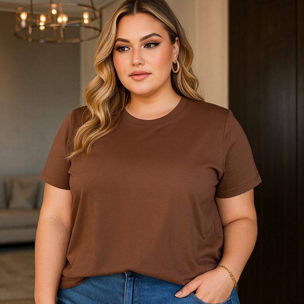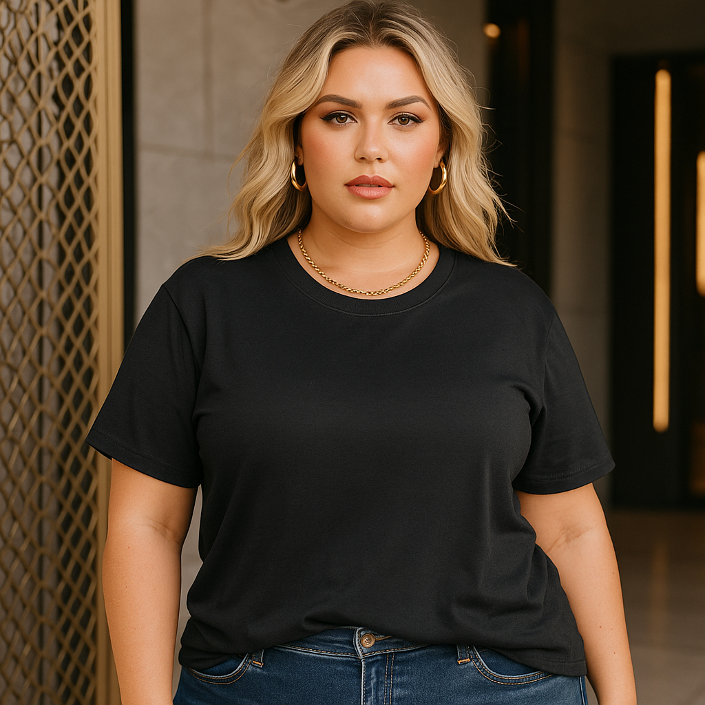 Camiseta T-shirt Feminina Plus Size Tamanho Grande GG Ao G4 Algodão Premium Lisa Básica
