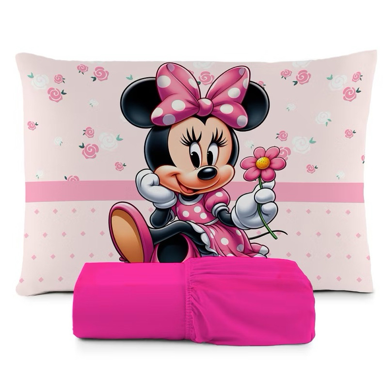 JOGO DE LENÇOL SOLTEIRO INFANTIL MINNIE FLOR DELICADA FRONHA TRAVESSEIRO, LENÇOL DE ELASTICO