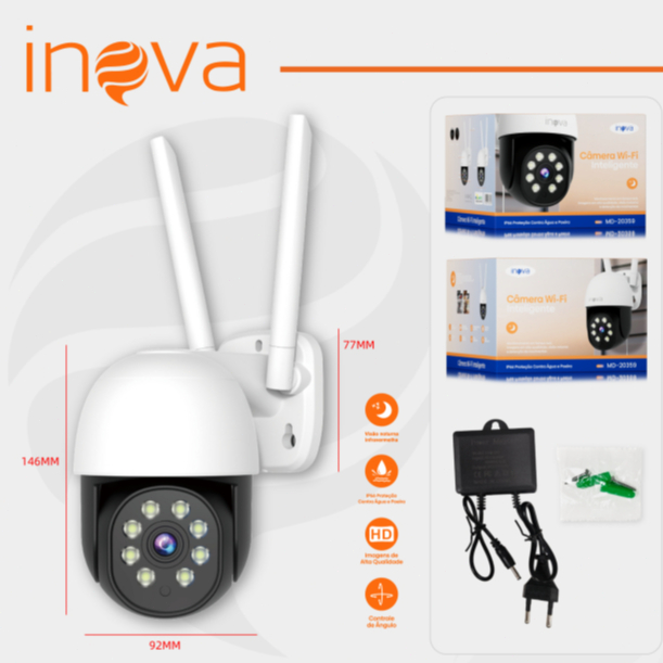 INOVA Câmera segurança Prova D'água sem fio gira 360° HD 1080P IP66 APP YOOSEE 110-220V ICSEE