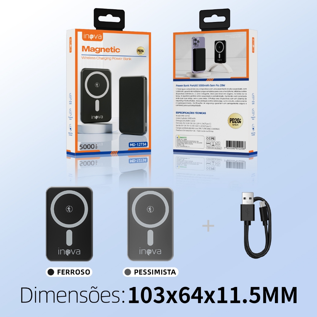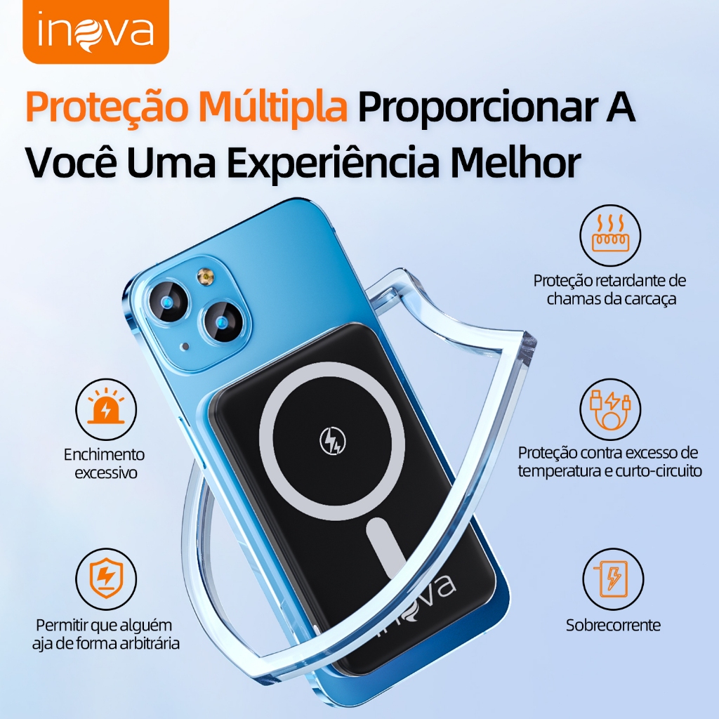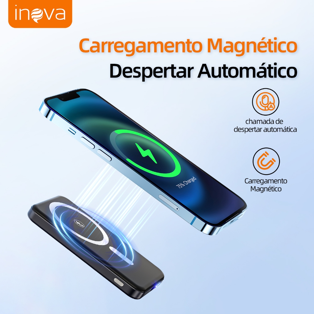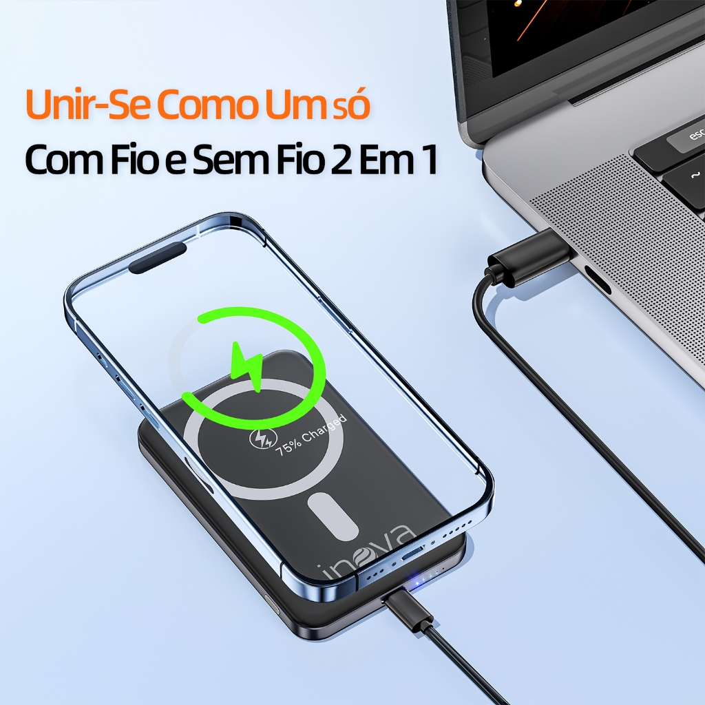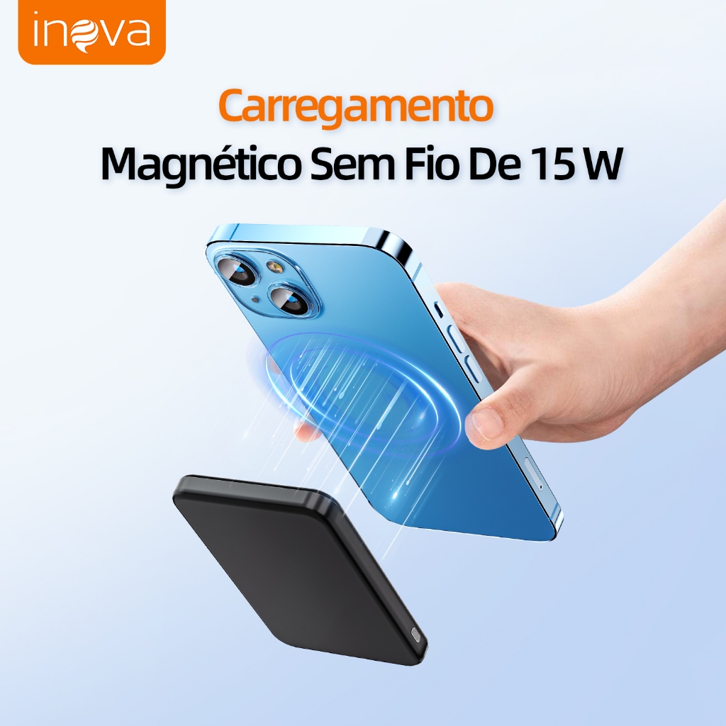 INOVA Power Bank 5000mAh Carregador Portátil Universal Original Micro USB Type-C Lightning Duas