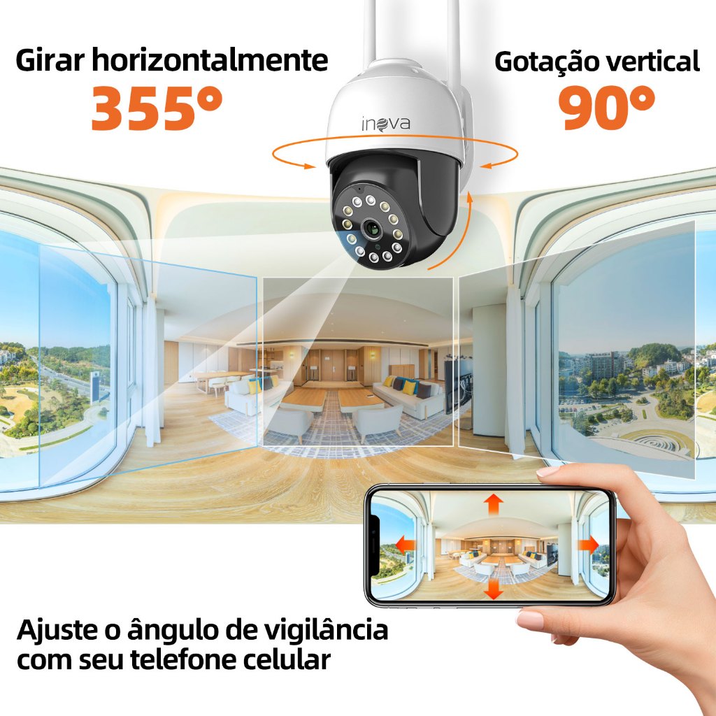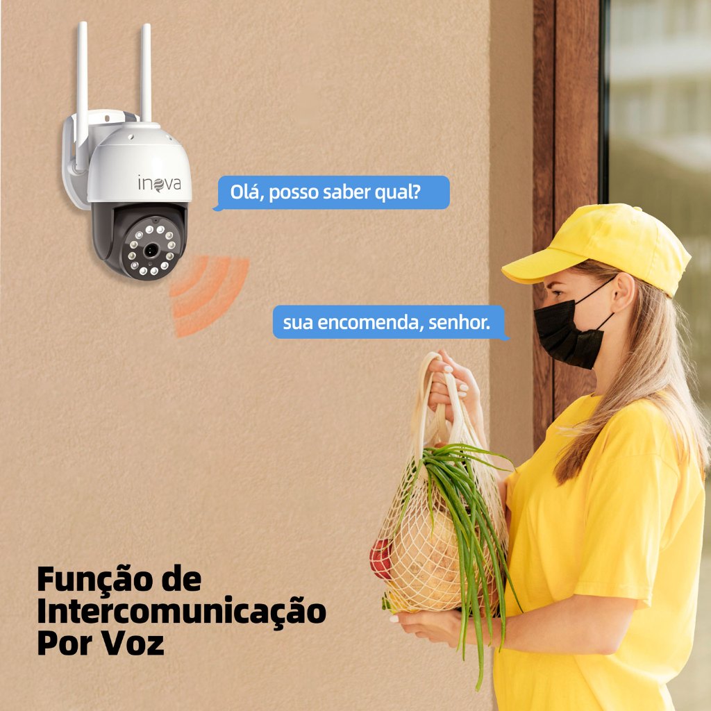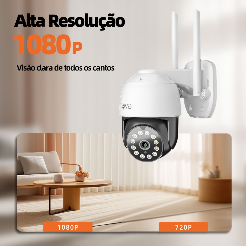 INOVA Câmera segurança Prova D'água sem fio gira 360° HD 1080P IP66 APP YOOSEE 110-220V