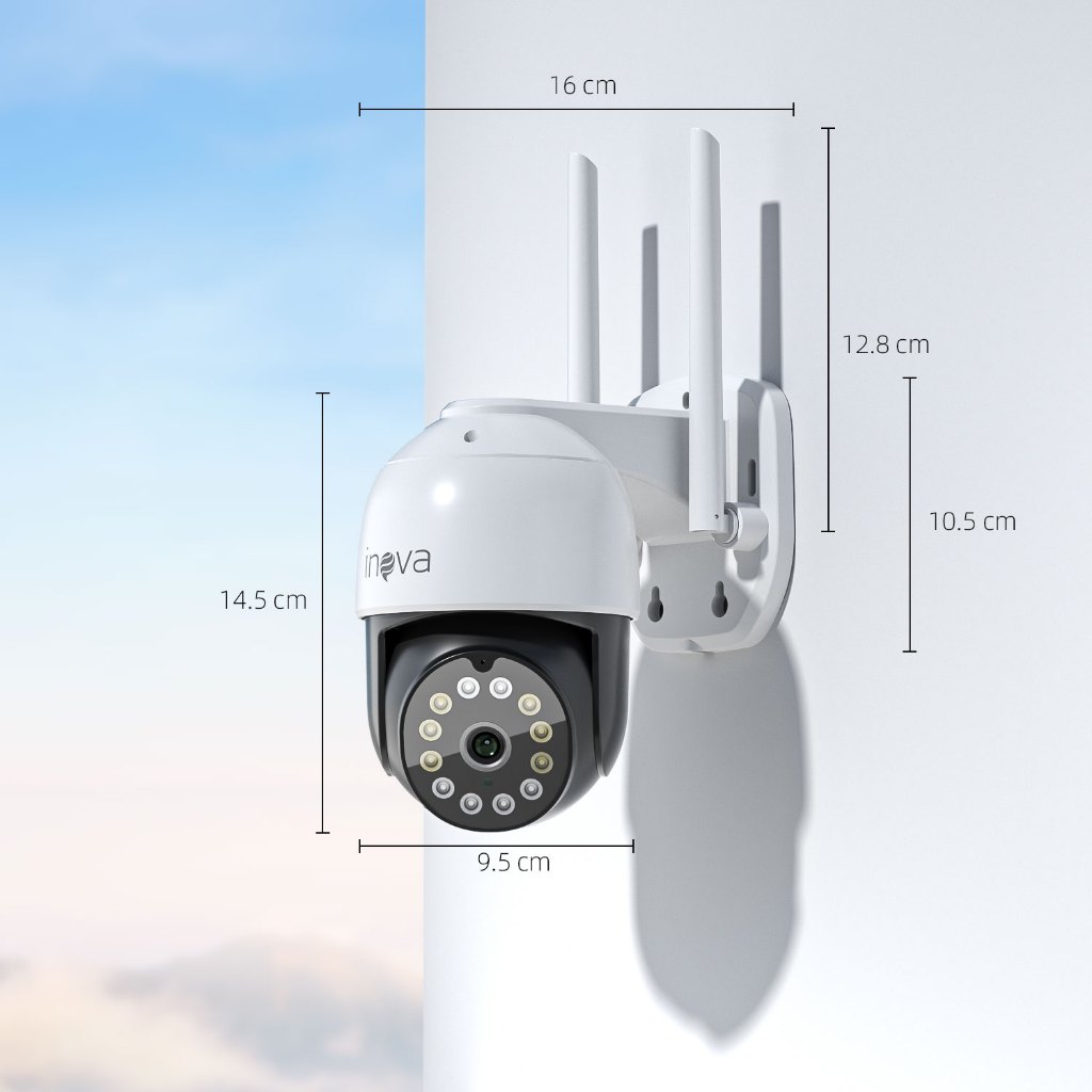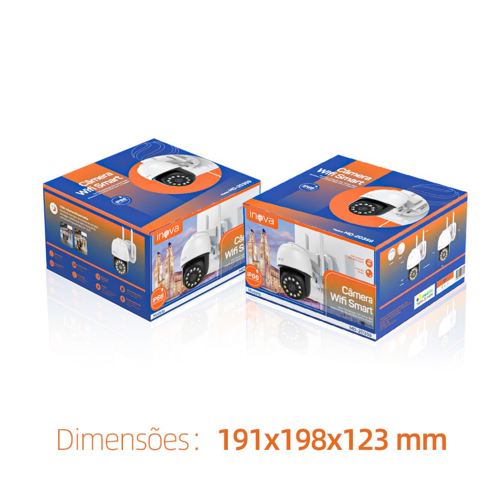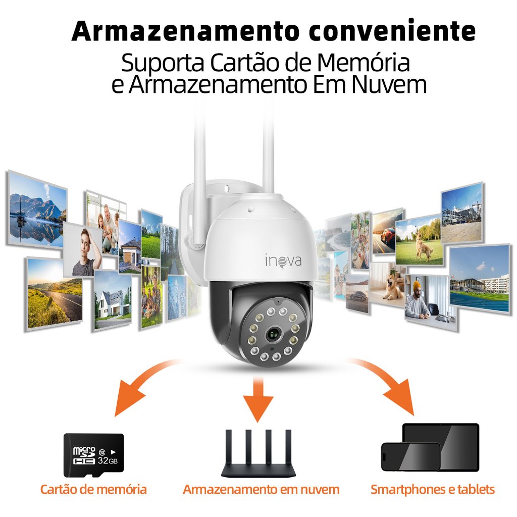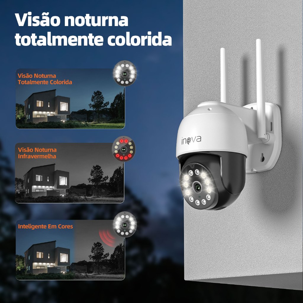 INOVA Câmera segurança Prova D'água sem fio gira 360° HD 1080P IP66 APP YOOSEE 110-220V