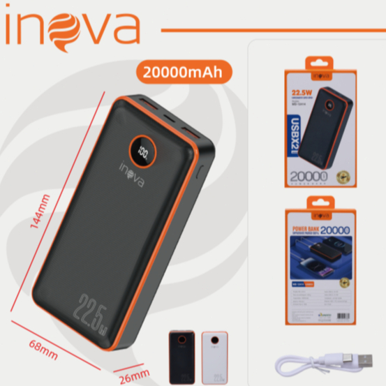 INOVA Power Bank turbo 20000 mAH Disp Digital Carga Rápida Carregador Portátil / iPhone Samsung