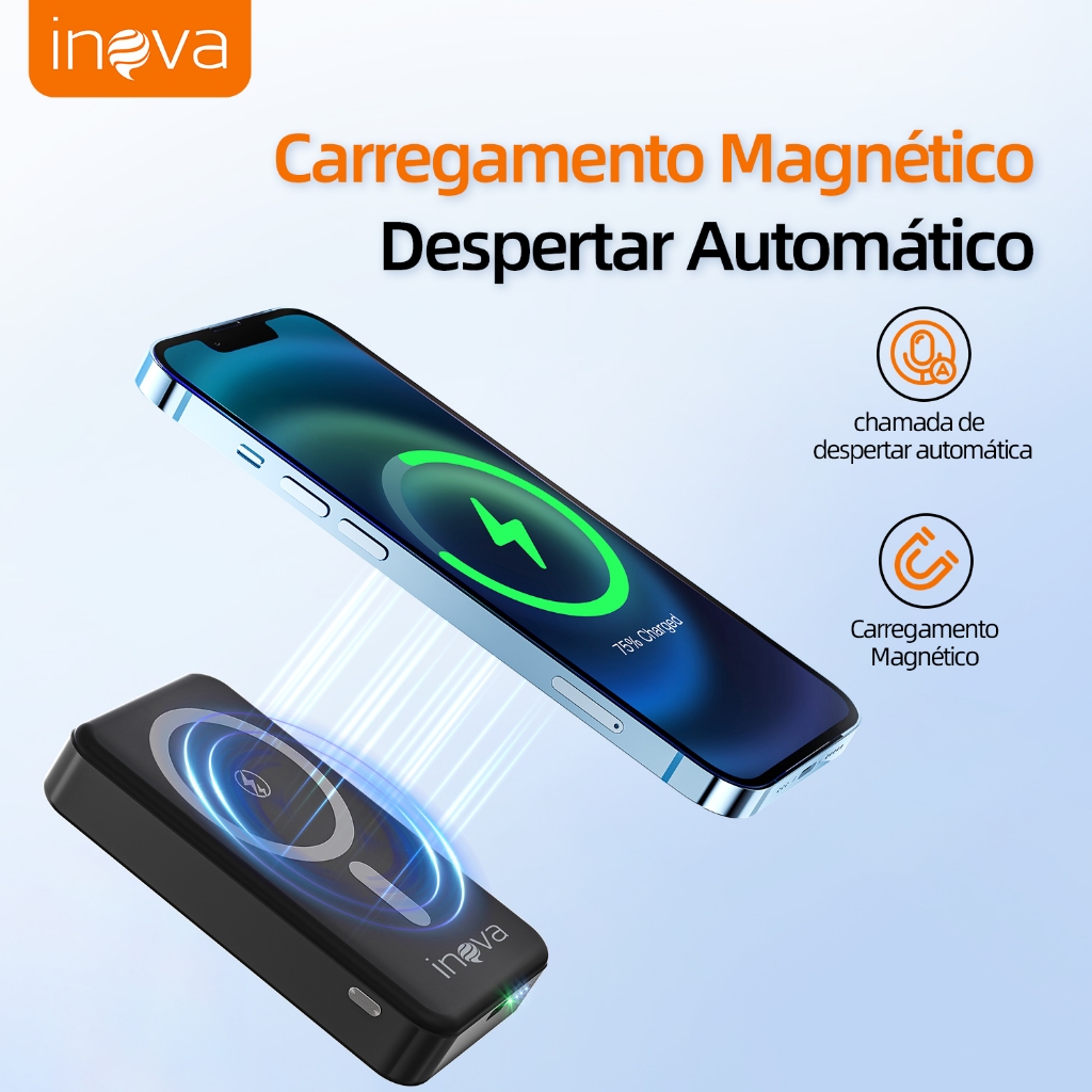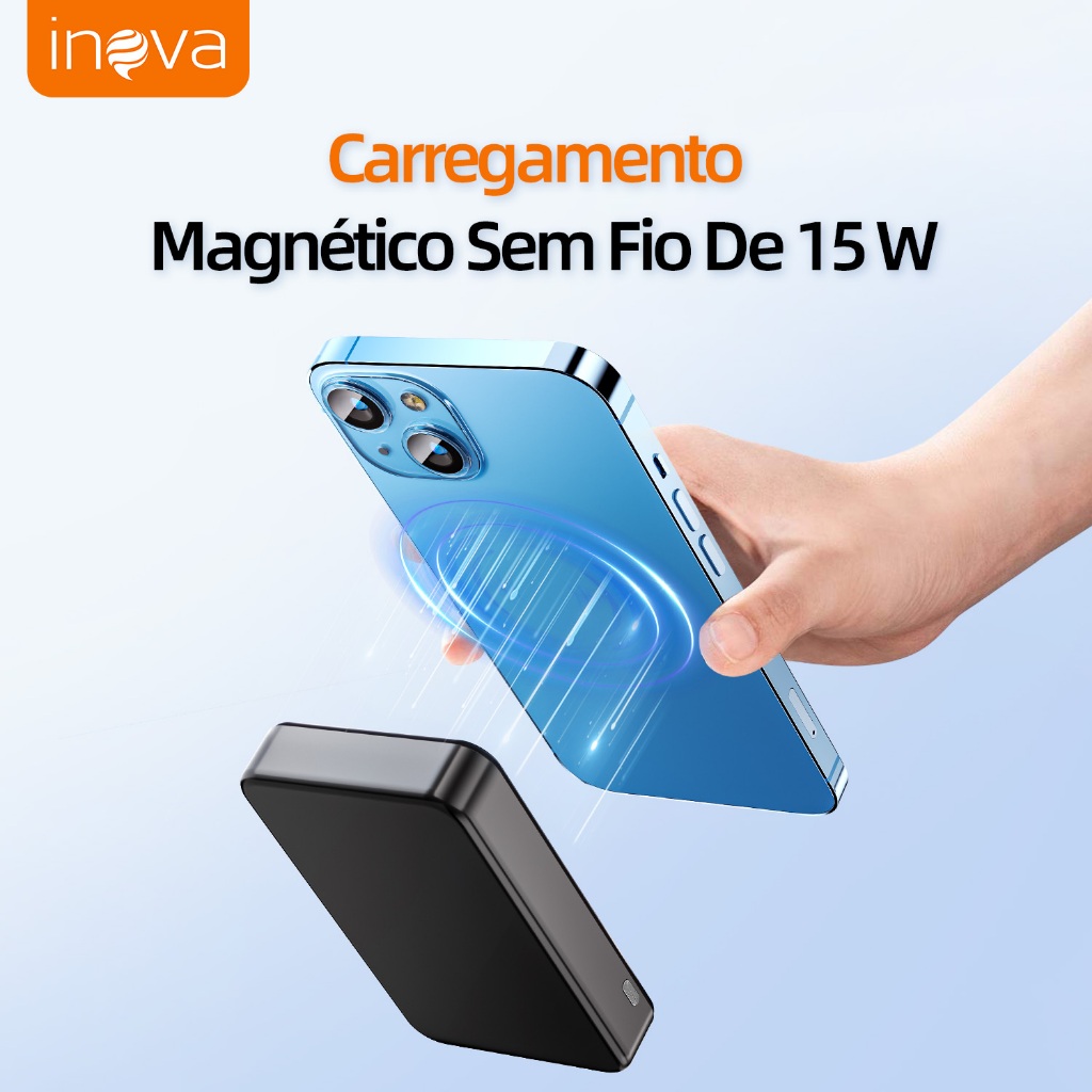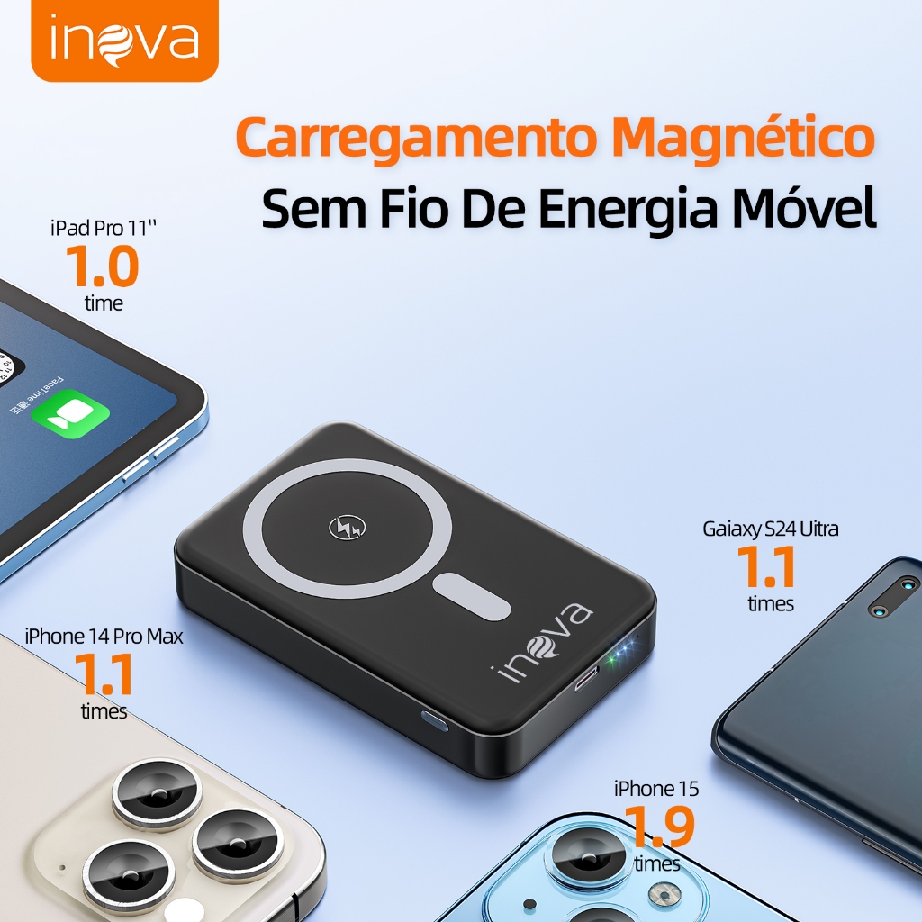 INOVA Carregador Portátil Indução para iPhone/Android Magsafe Apple Sem fio Bateria Carga 5000mAh