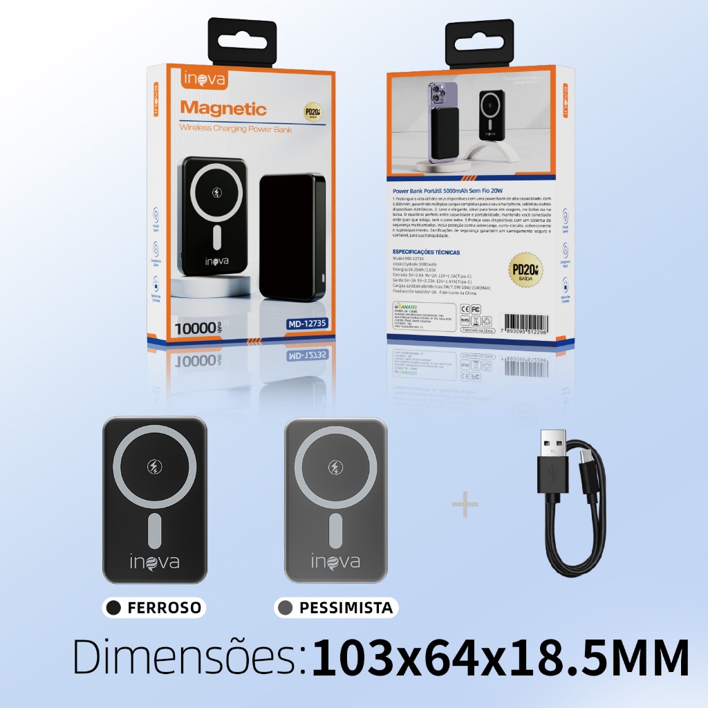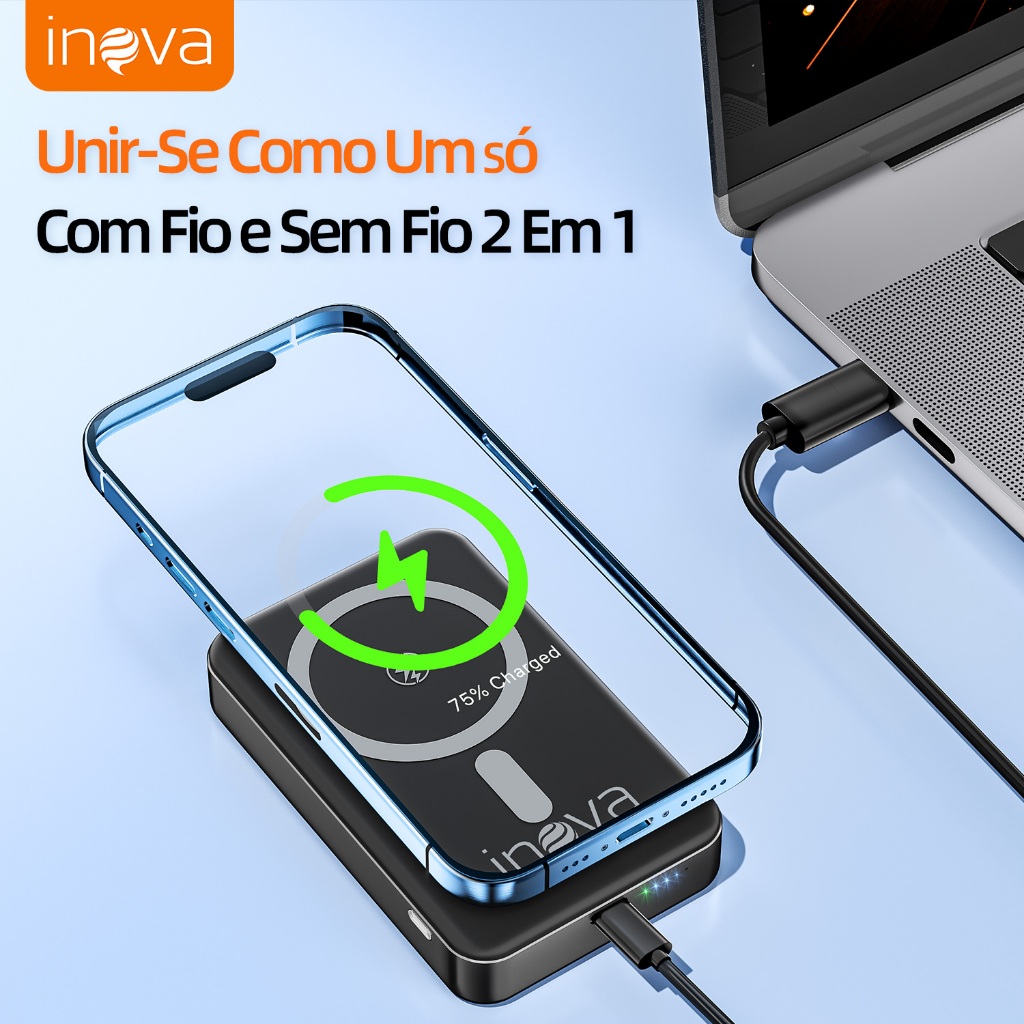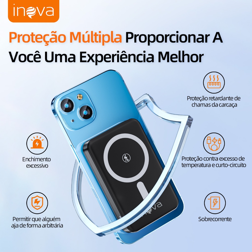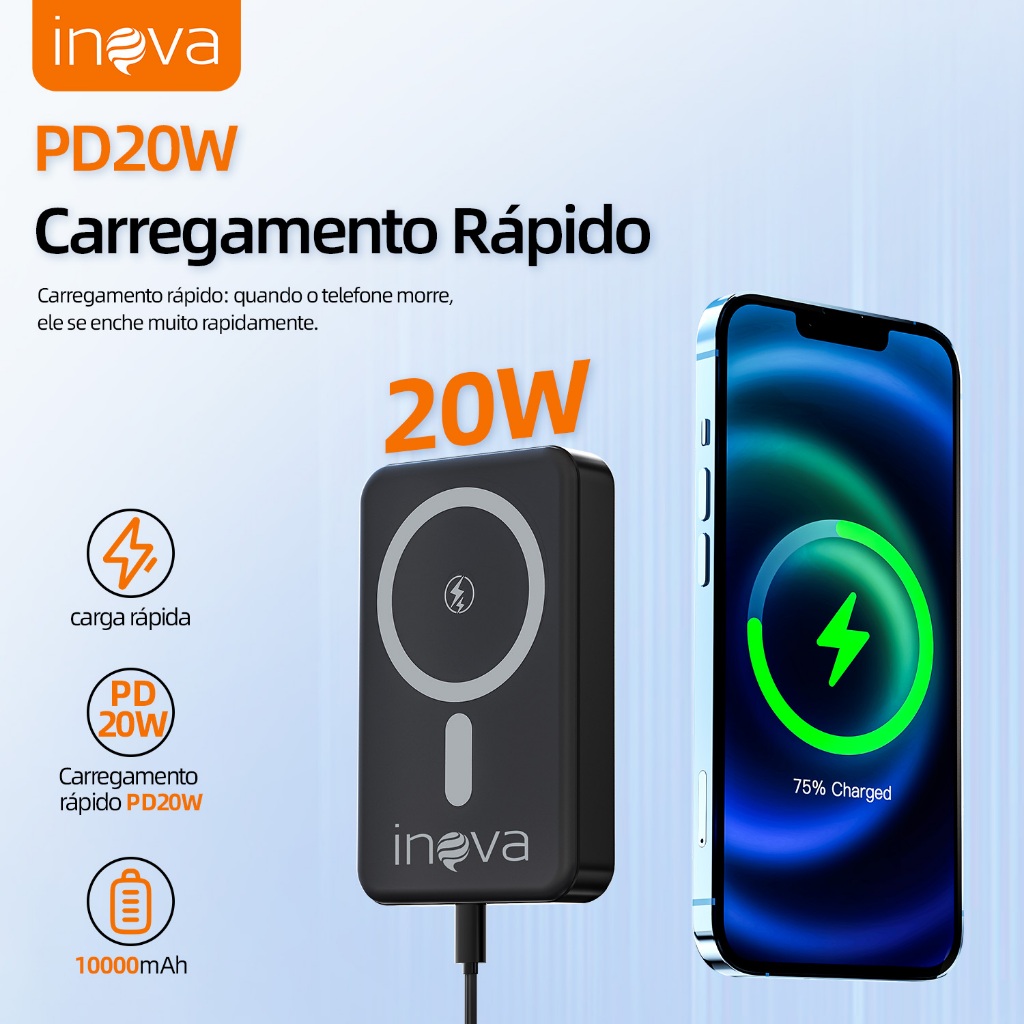 INOVA Carregador Portátil Indução para iPhone/Android Magsafe Apple Sem fio Bateria Carga 5000mAh