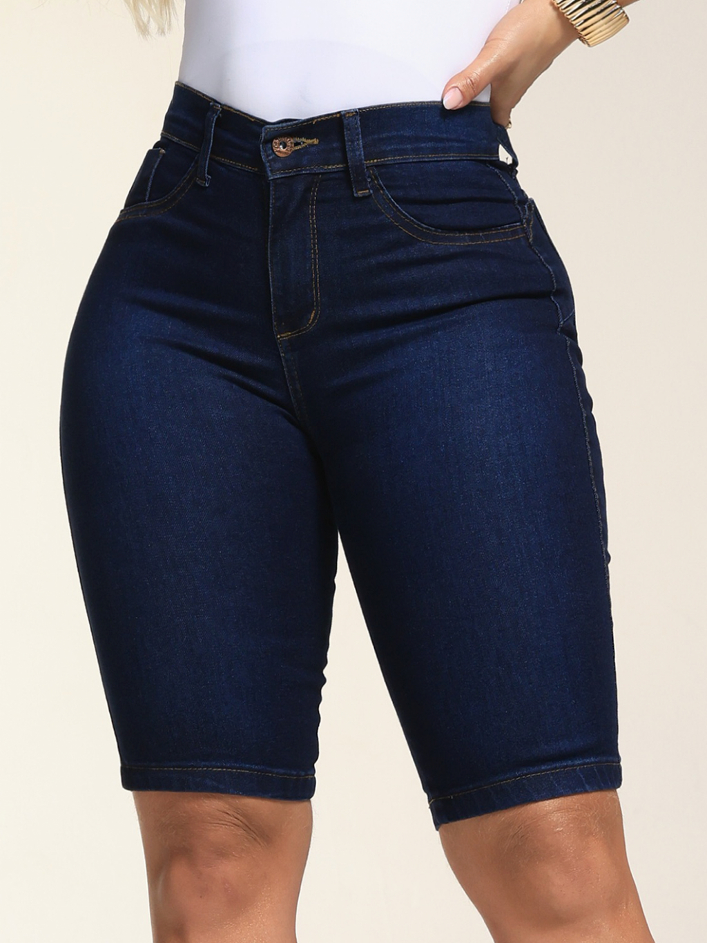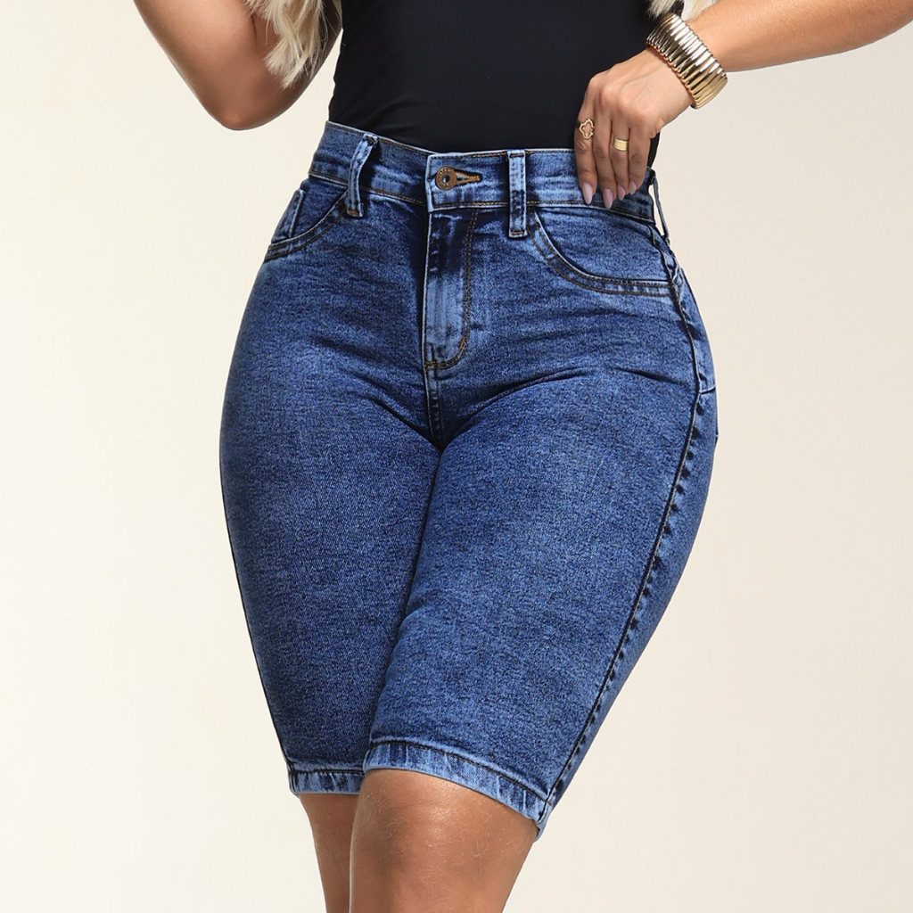 Bermuda Ciclista Jeans Feminina Com Pinça Levanta Bumbum Com Elastano