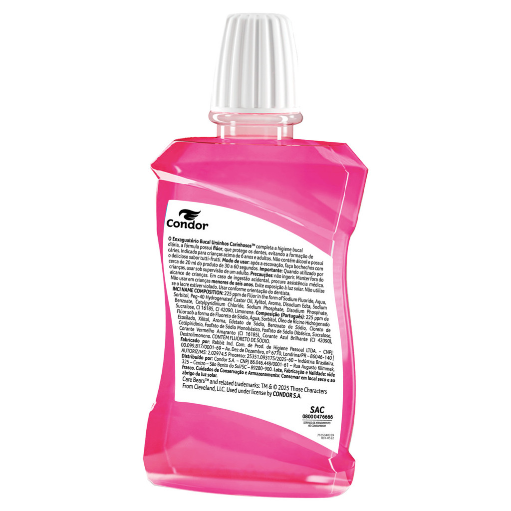 Enxaguante Bucal Zero Álcool Ursinhos Carinhosos Condor 250ml