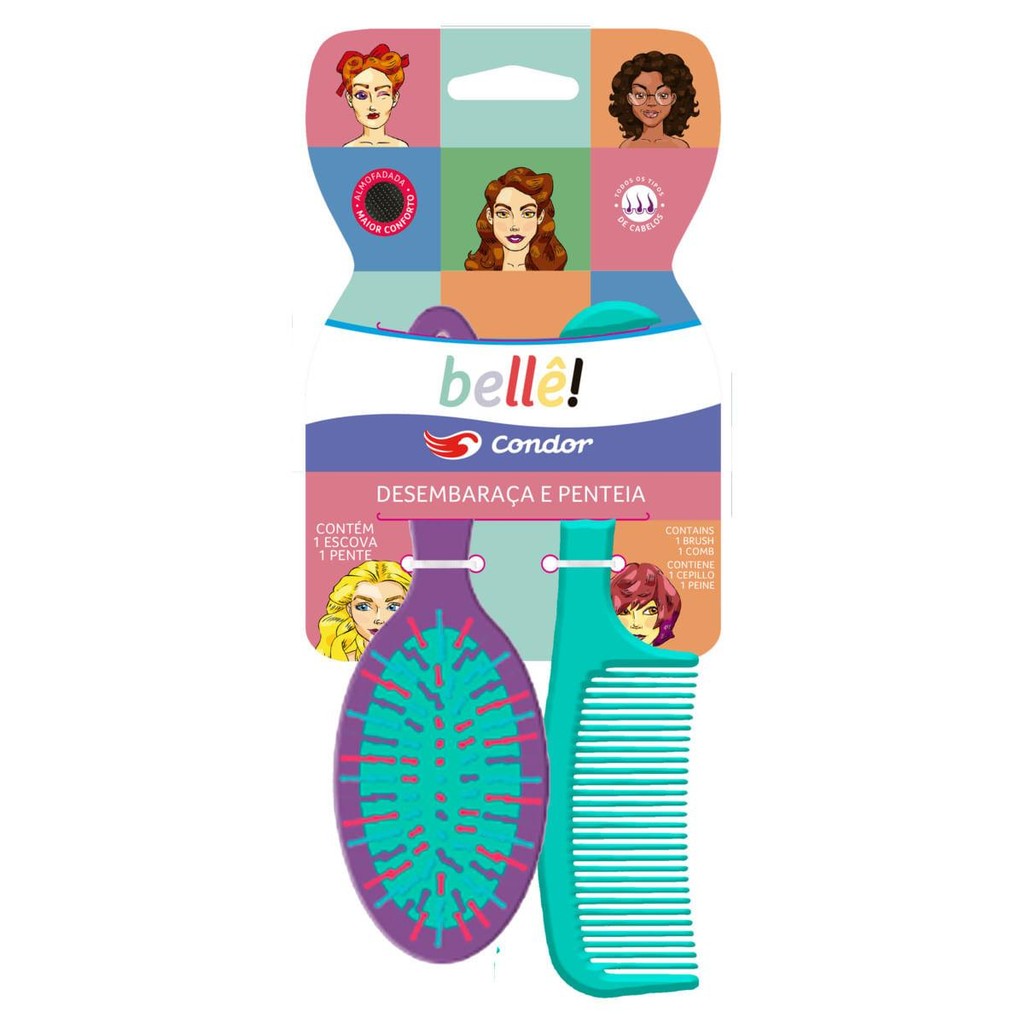 Kit Escova Almofadada Oval + Pente Mundo Condor Bellê