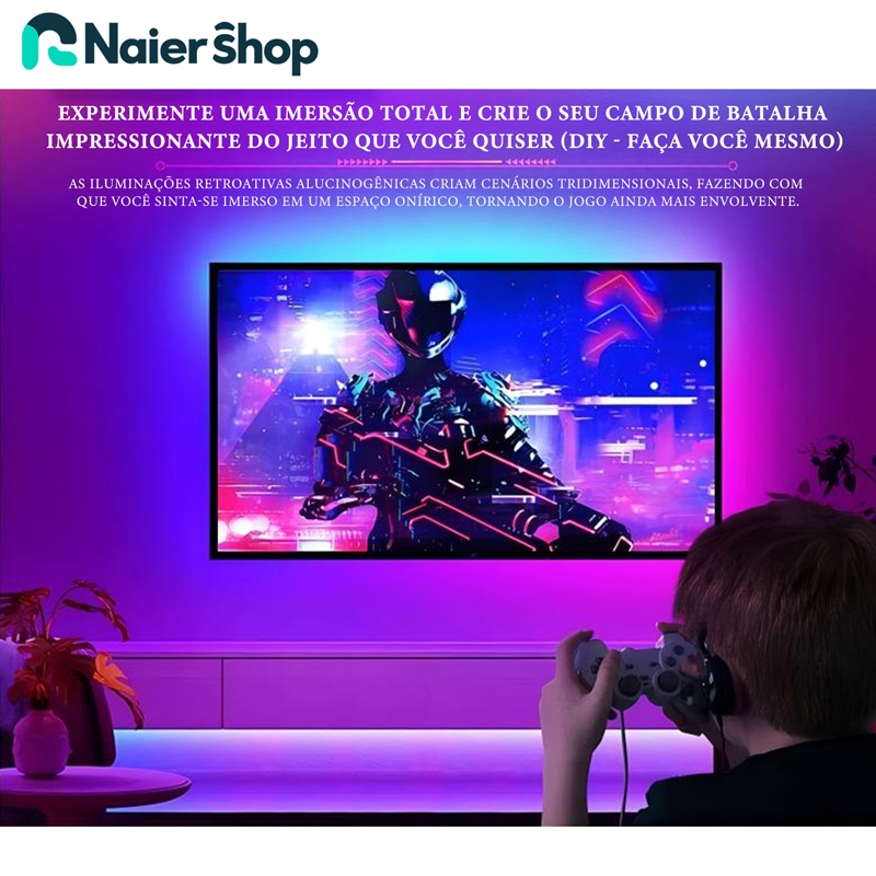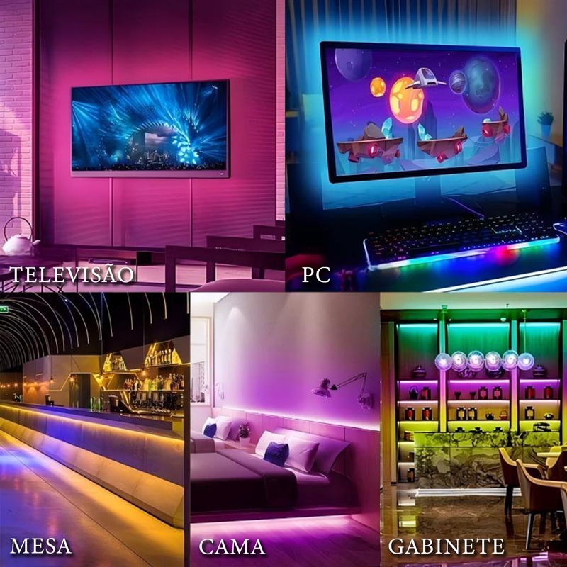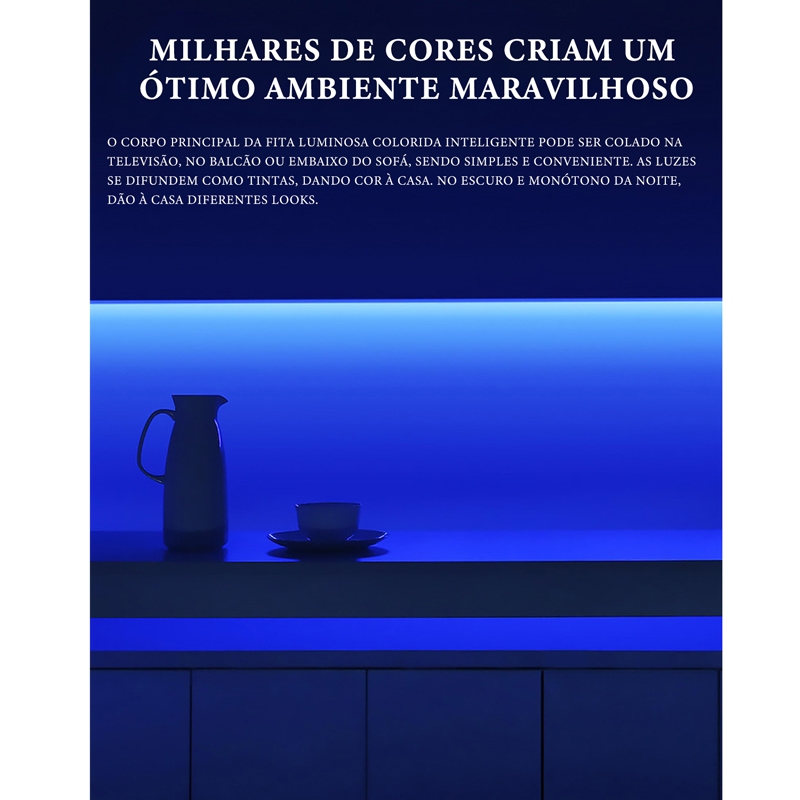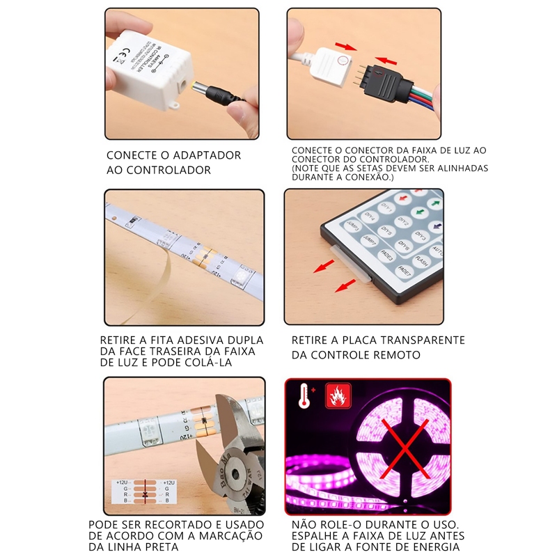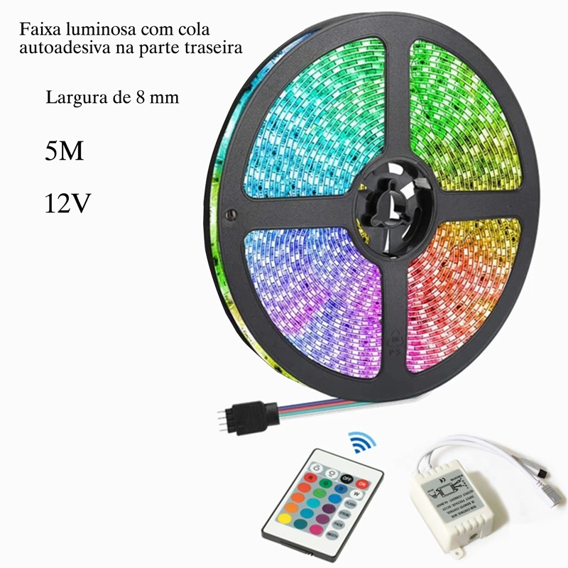 Fita Led Rgb 3528 Rolo 5m 16 combinações de cores Com Fonte e Controle Tensão de Operação 12V Bivolt