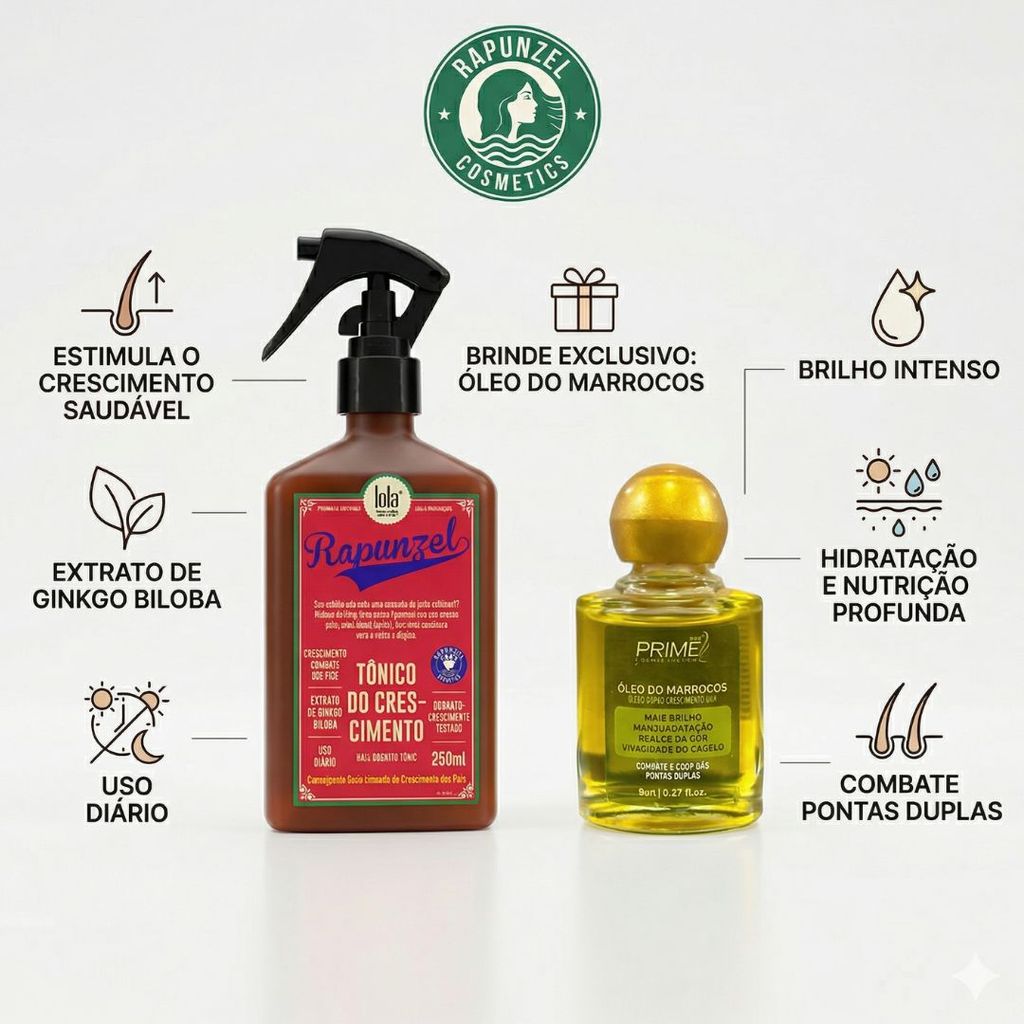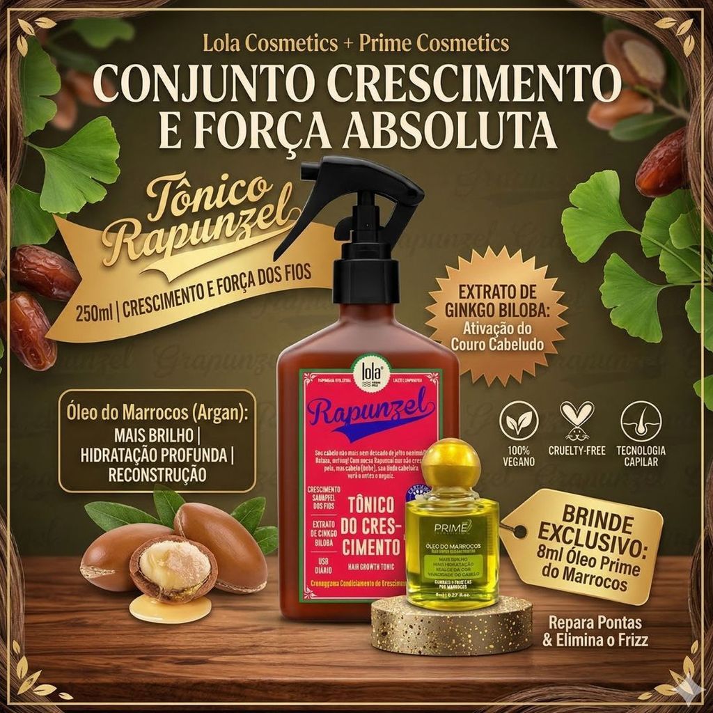 Tônico Rapunzel 250ml Lola Cosmetics Crescimento e Força dos Fios + Brinde oleo prime 8ml