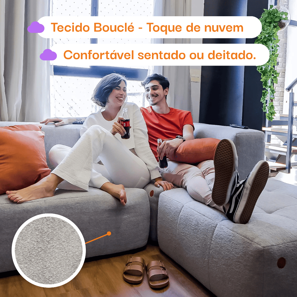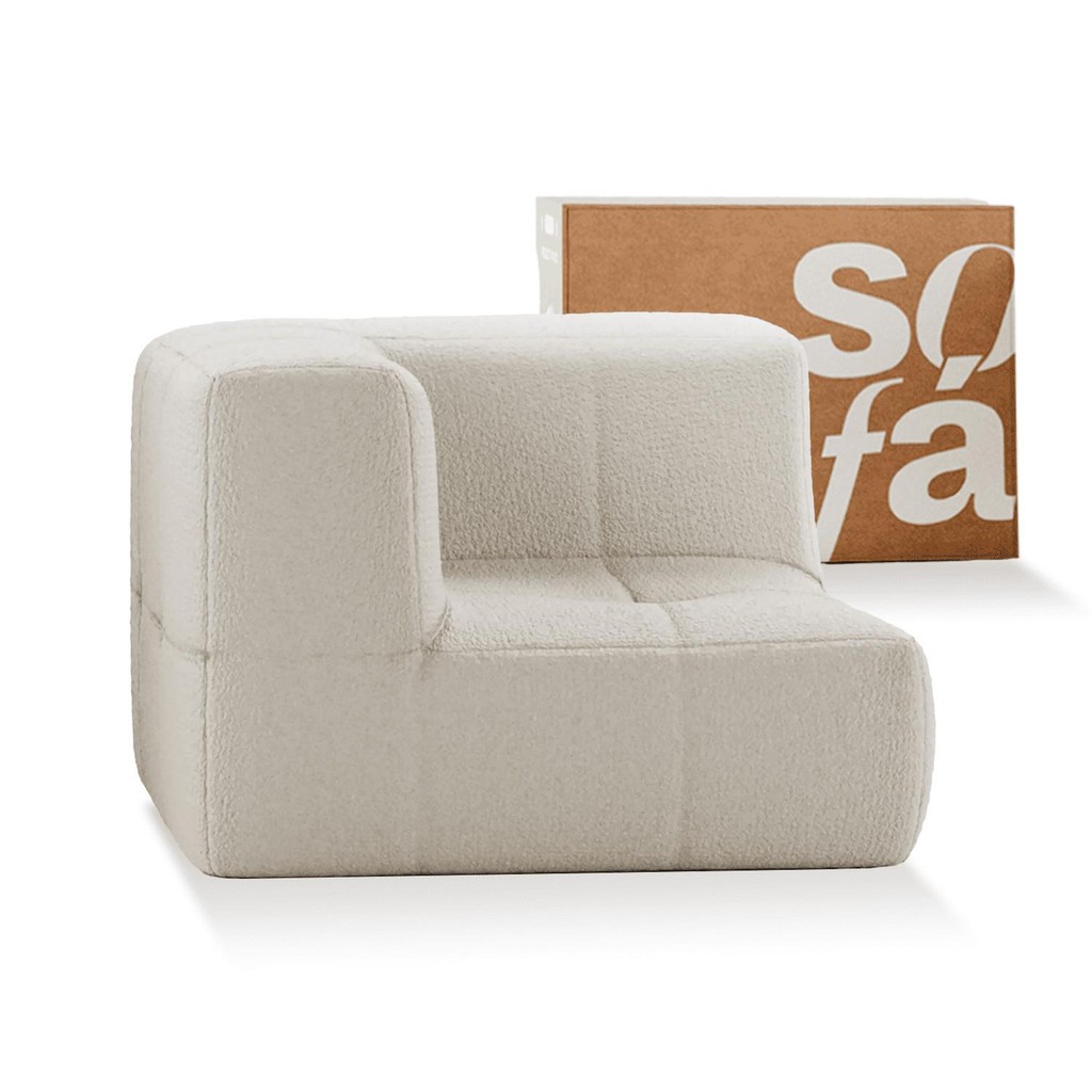 Sofá Modular 1 lugar Canto em L - Sofá na Caixa em Boucle com 1 Módulo 86cm