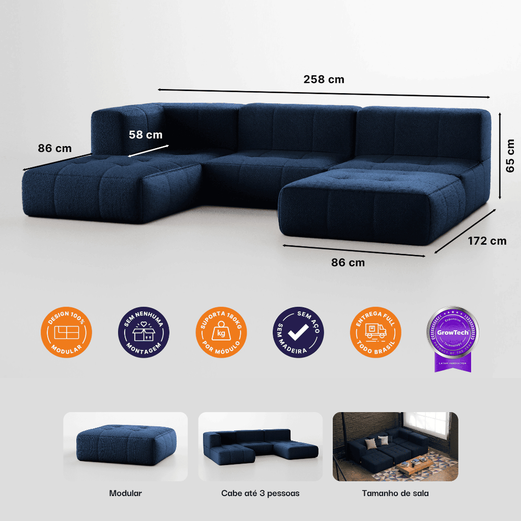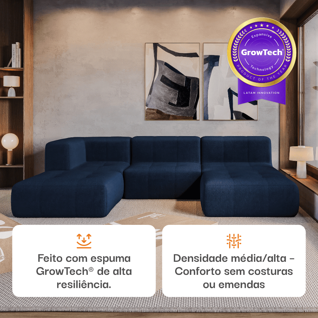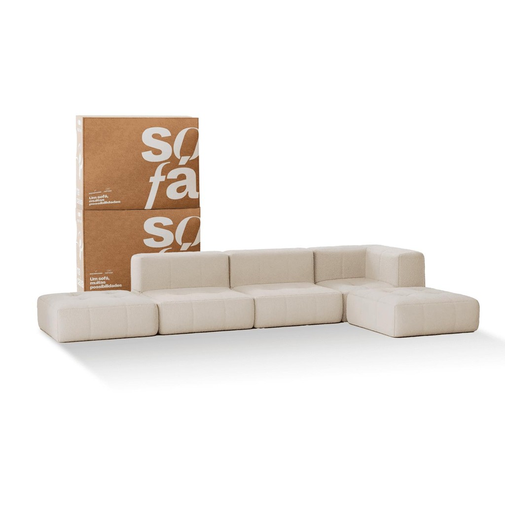 Sofá 3 lugares Modular - Sofá na Caixa em Boucle com 3 Módulos 3,44m - 1 Braço