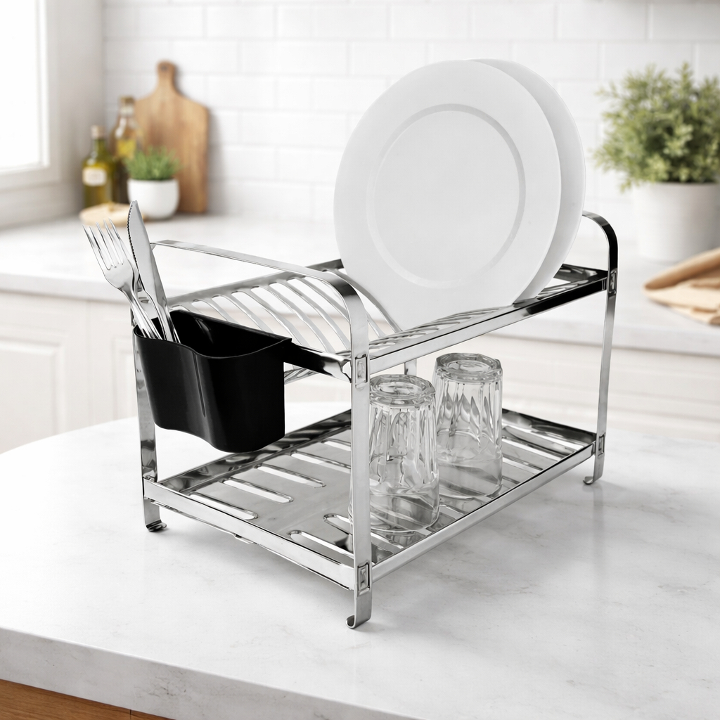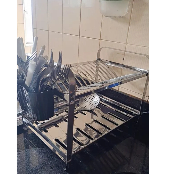 Escorredor de Louça inox para 16 pratos com porta talher plástico