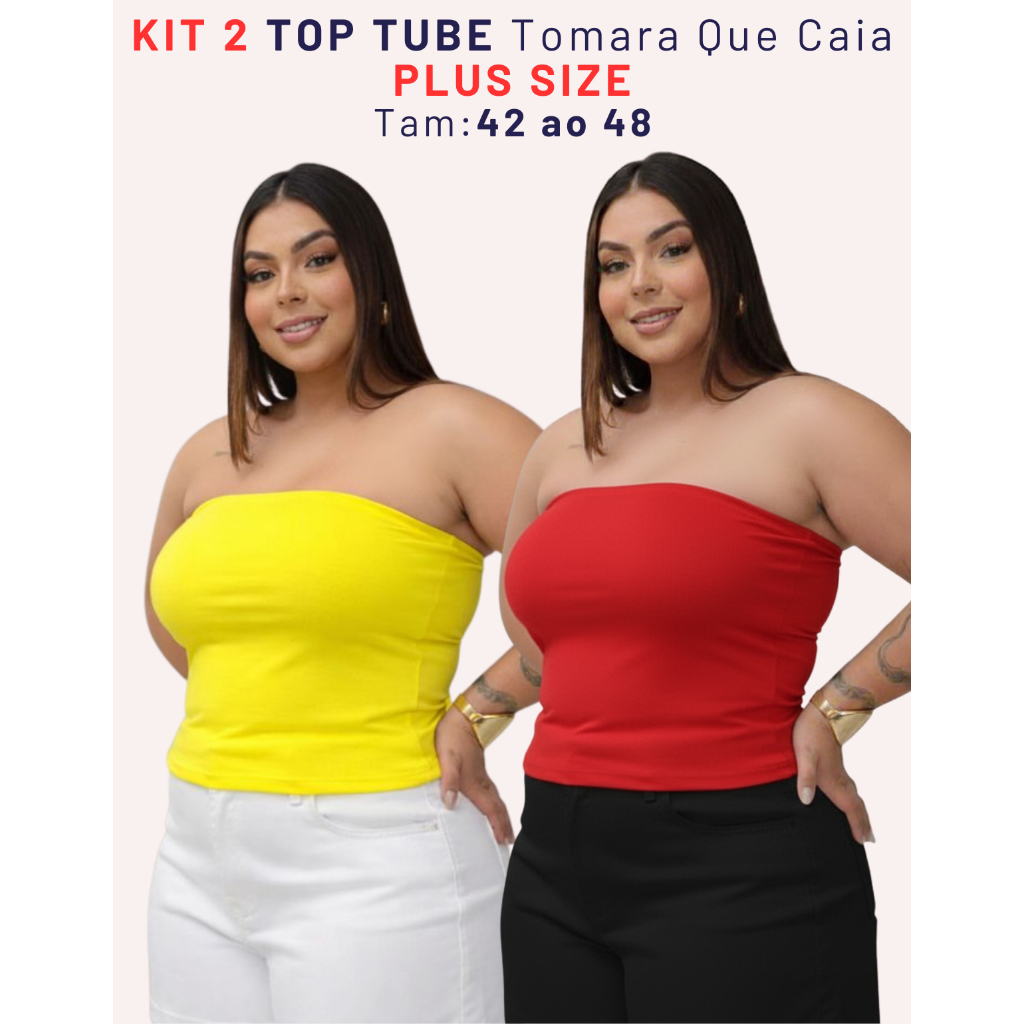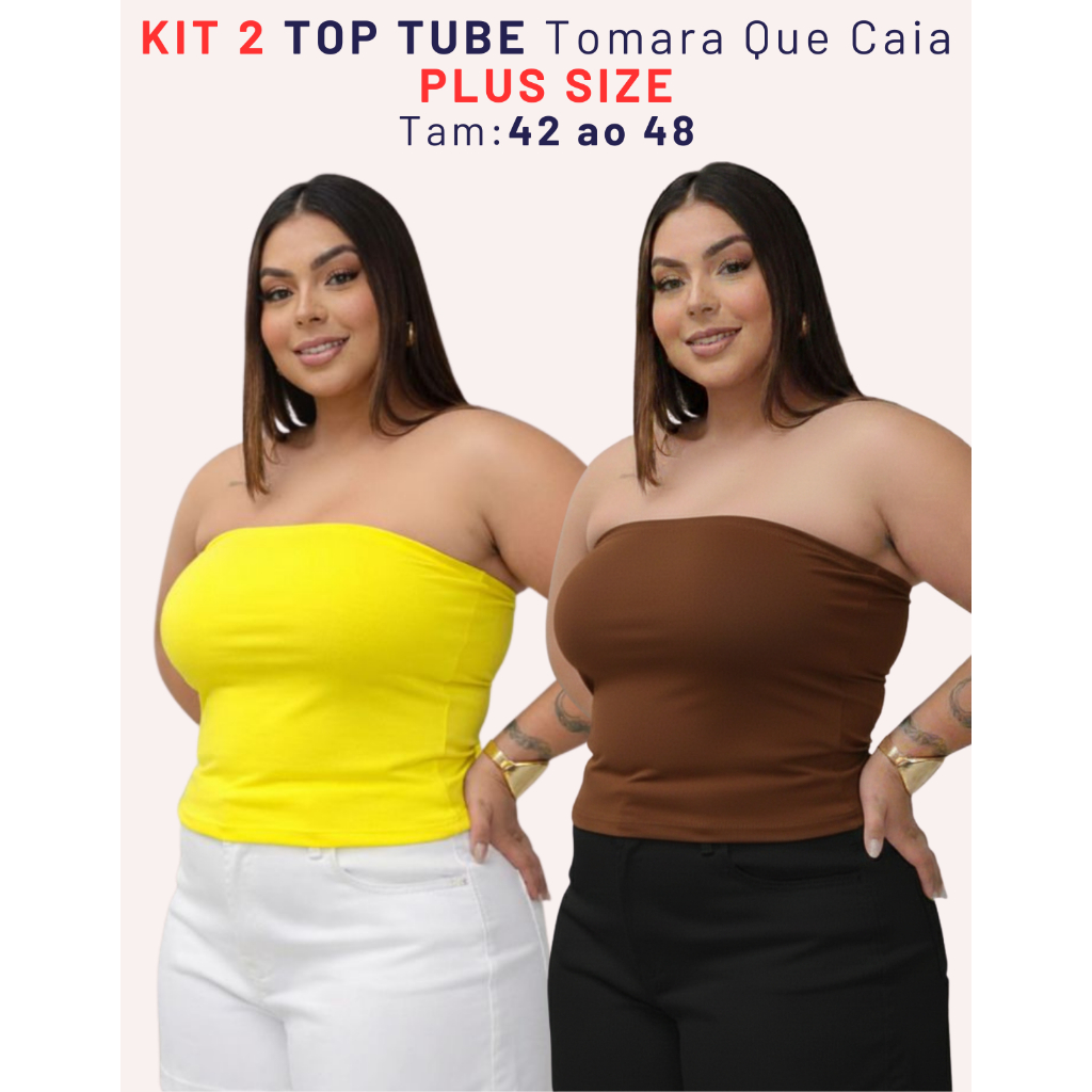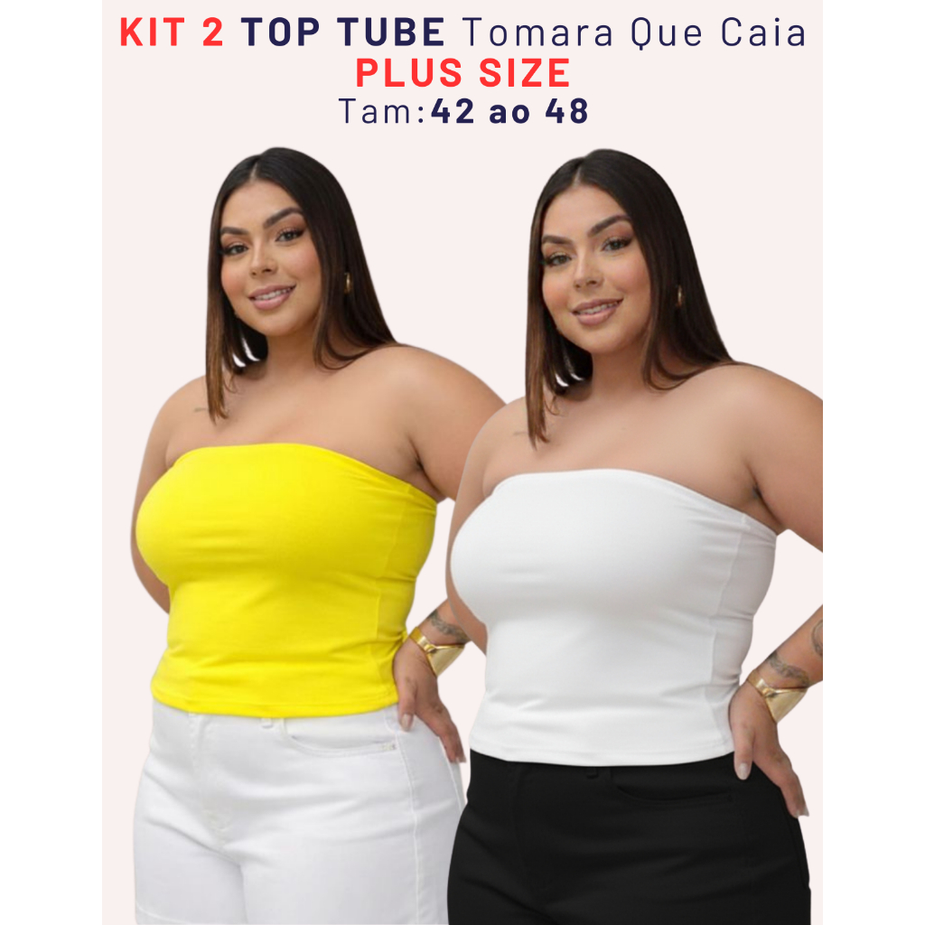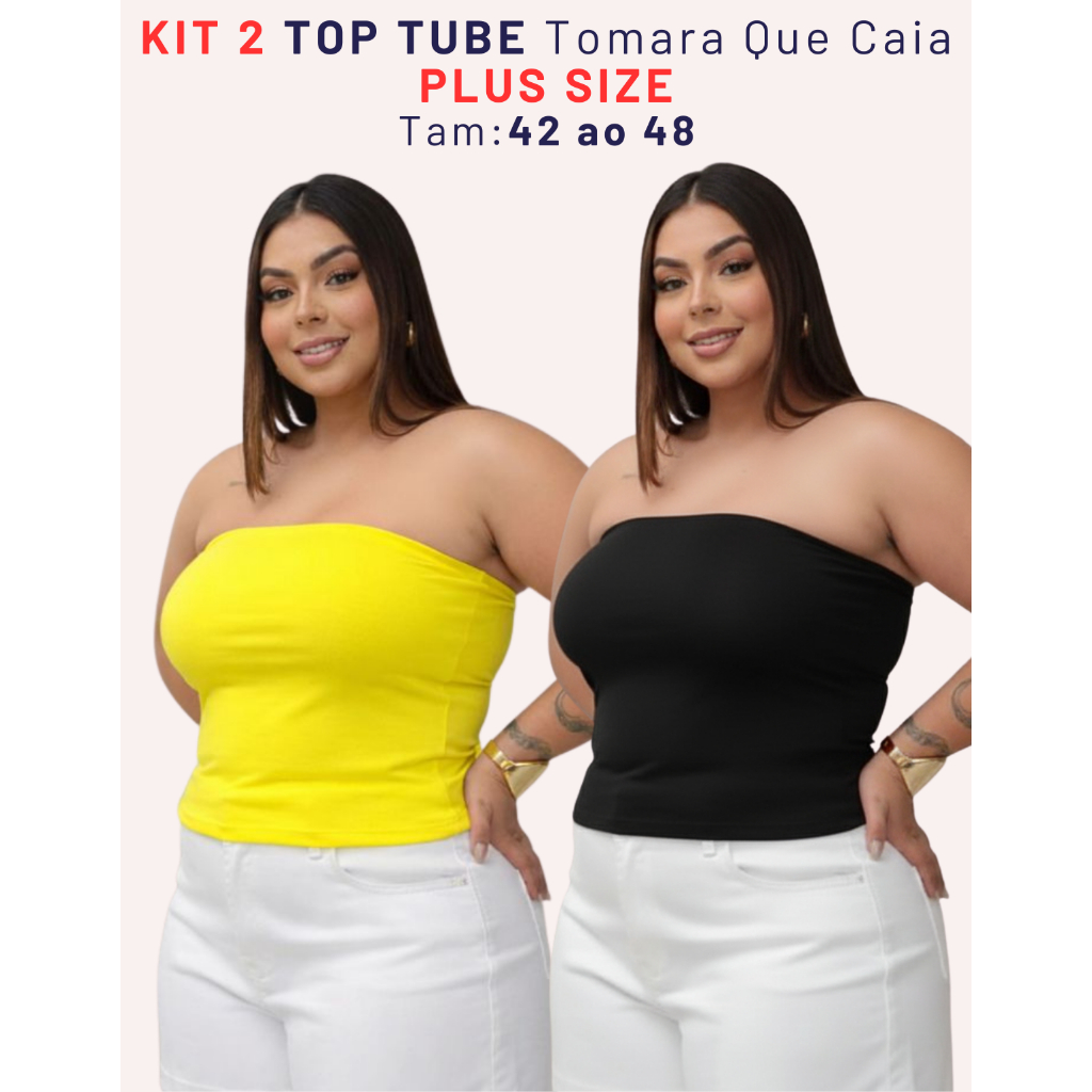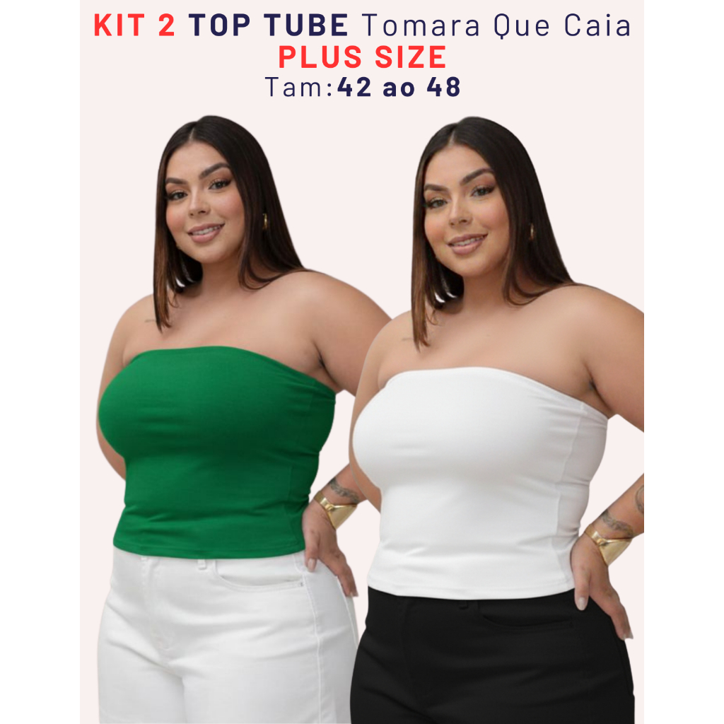 Kit 2 Top Faixa Plus Size Tomara Que Caia Tube Forrado Blusa Básica Elegante Verão