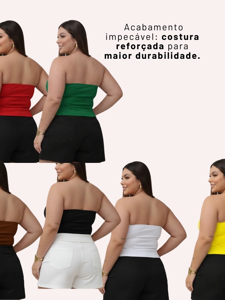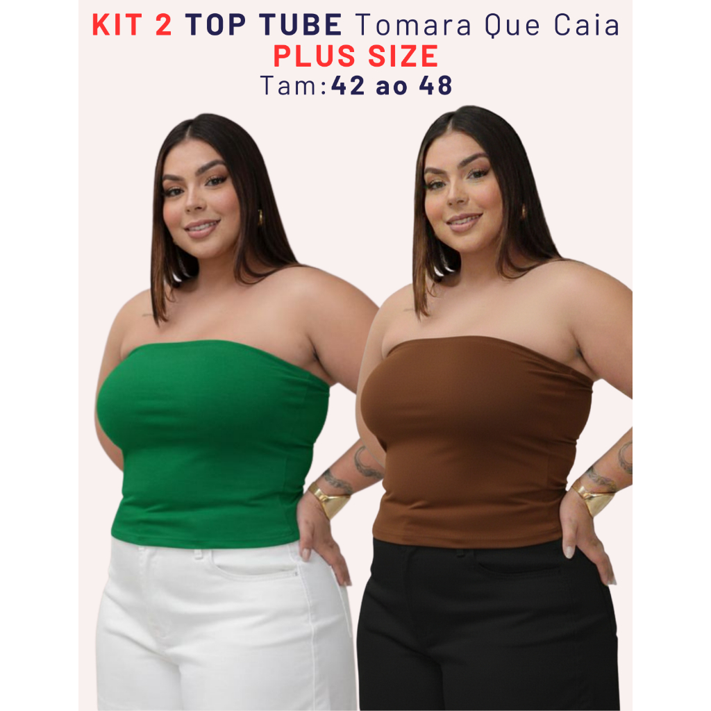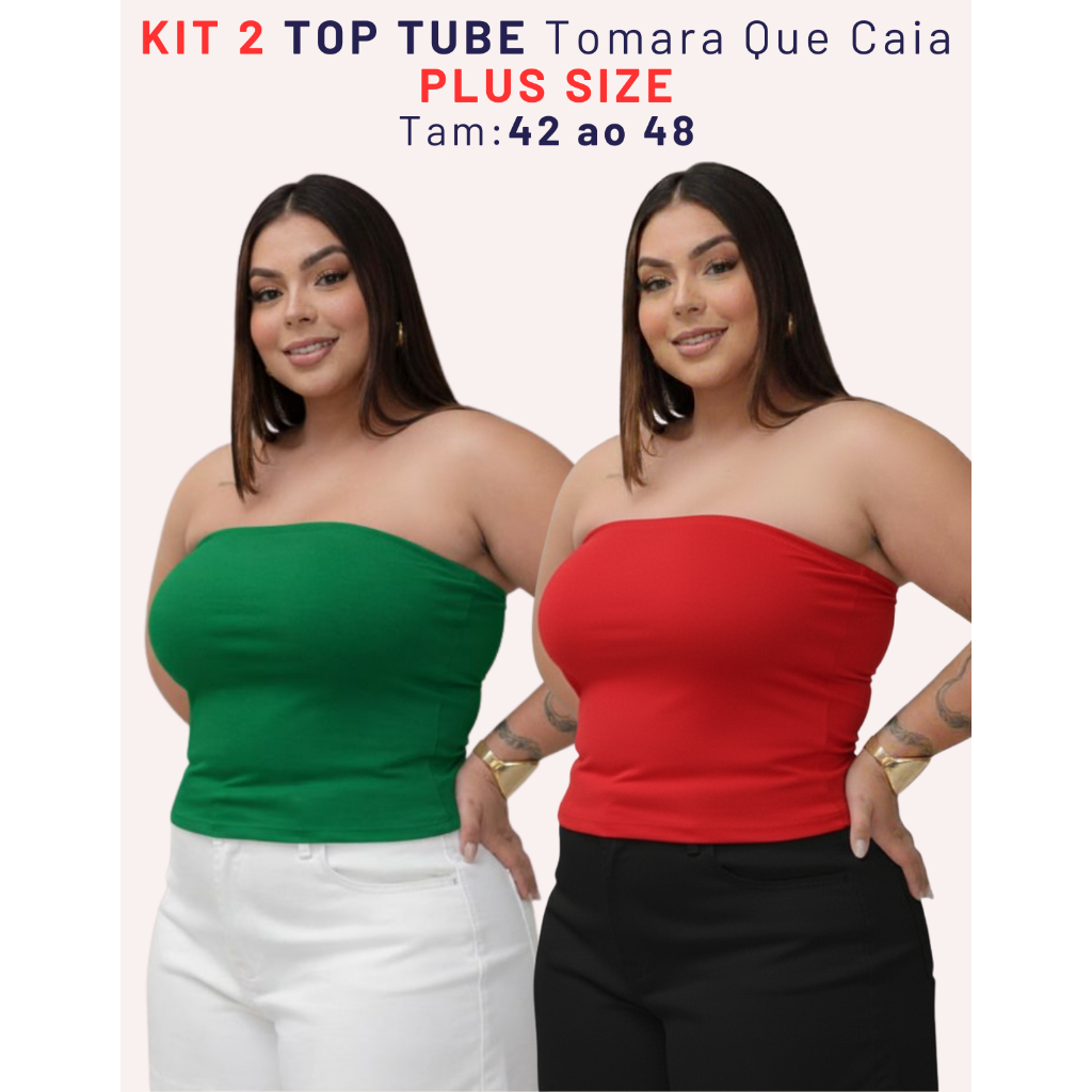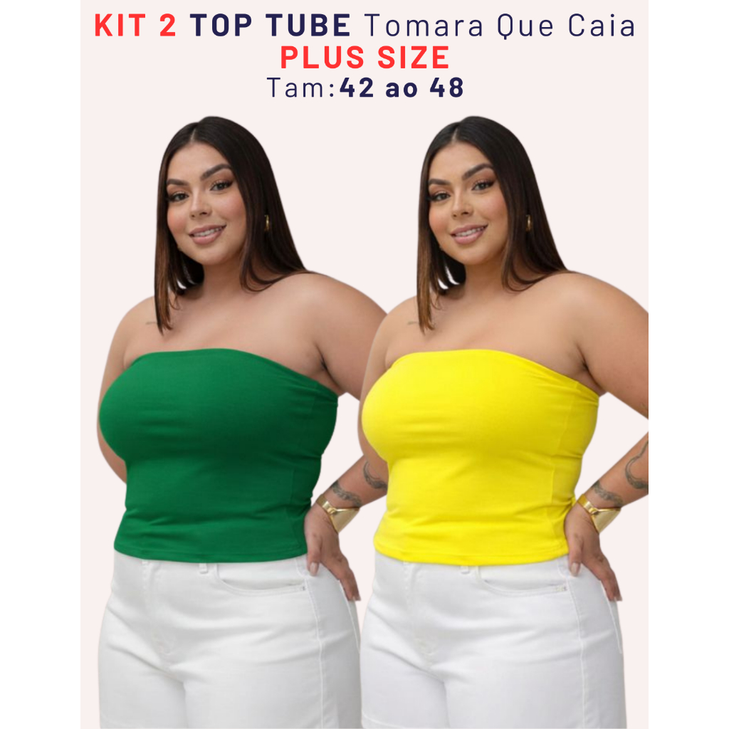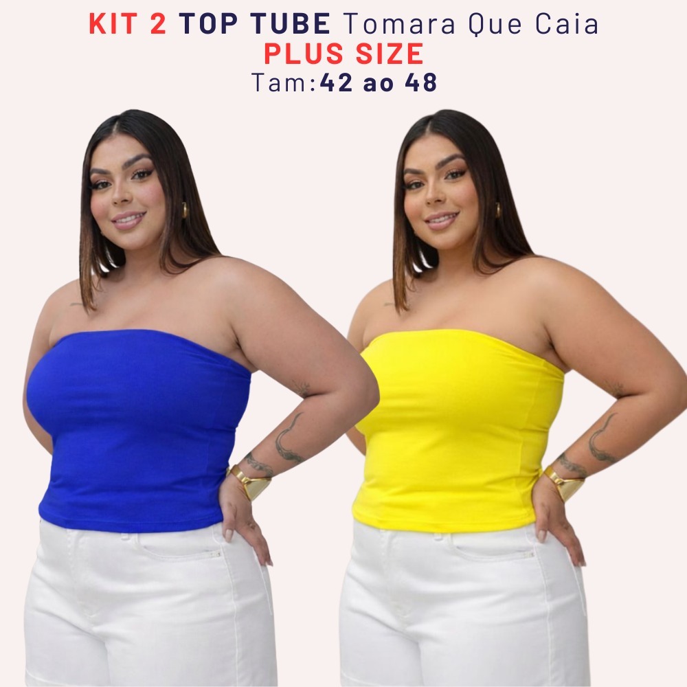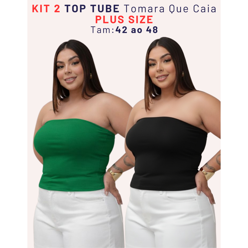 Kit 2 Top Faixa Plus Size Tomara Que Caia Tube Forrado Blusa Básica Elegante Verão