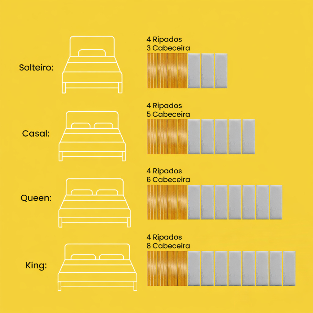 Kits Cabeceiras e Ripados Linha Premium Luxo Conjunto Completo Cama Casal King Queen Dupla