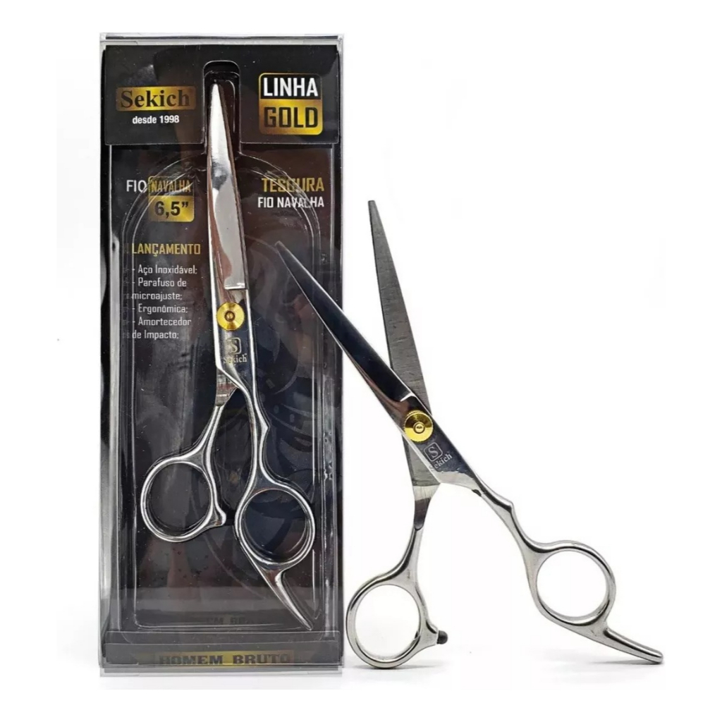 Tesoura Fio Navalha Profissional Sekich Gold 6.5 Inox | Corte Preciso Cabelo | Cabeleireiro Barbeiro