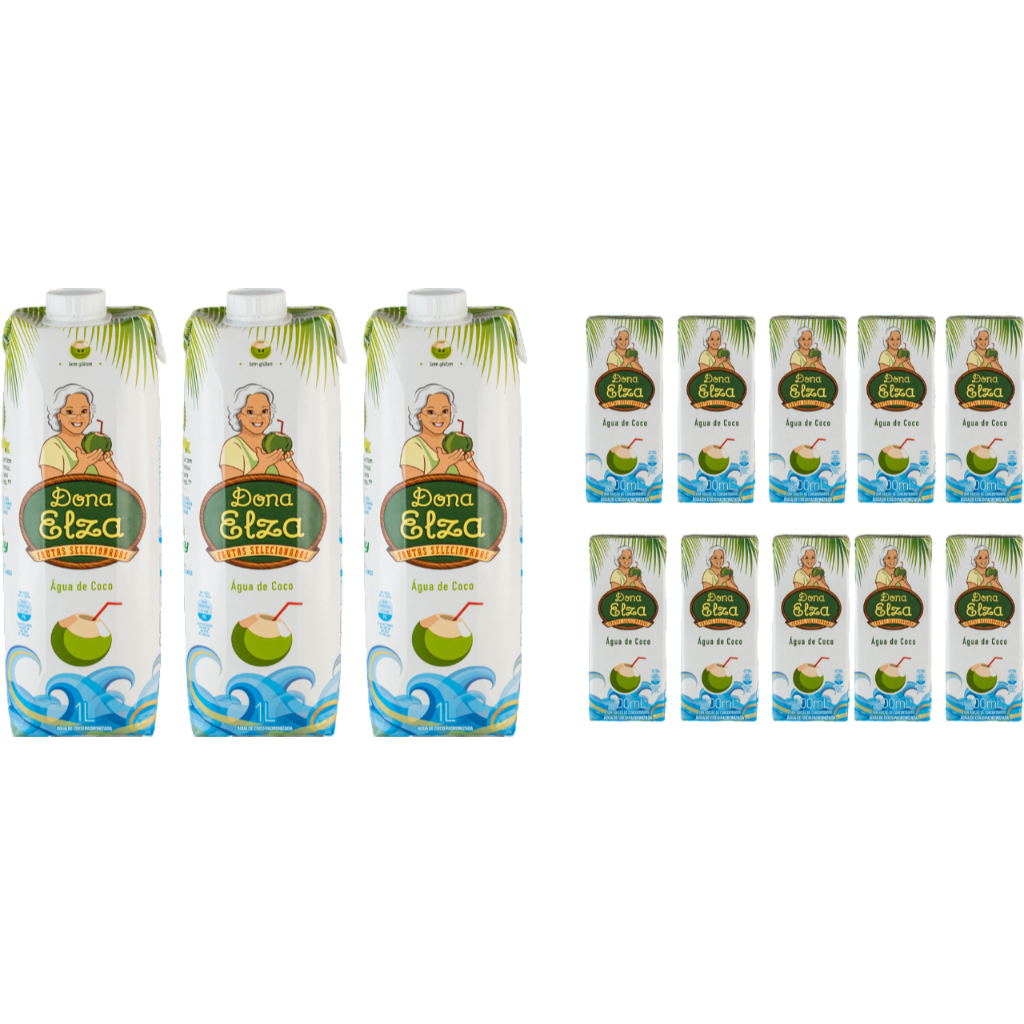 Kit C/ Água De Coco Dona Elza 1L (3 Unds) + Água Coco De Dona Elza 200ml (10 Unds)