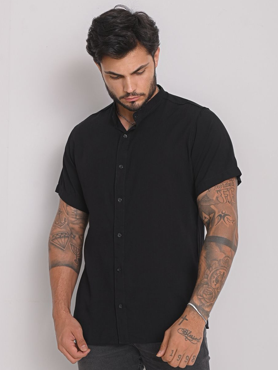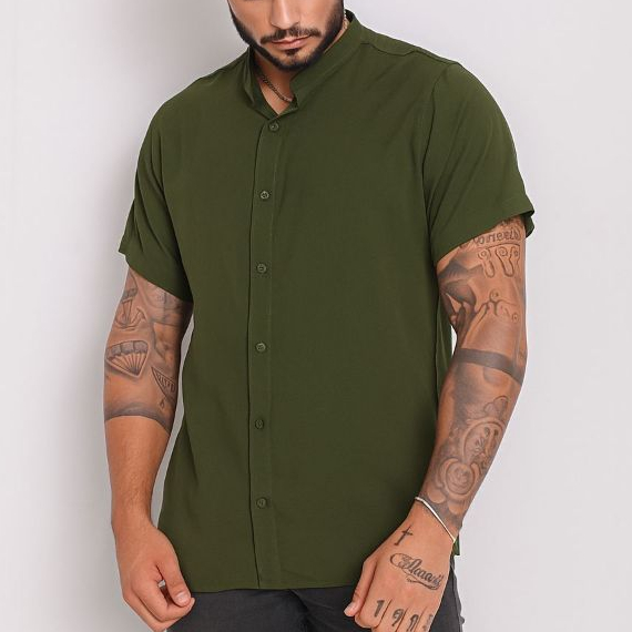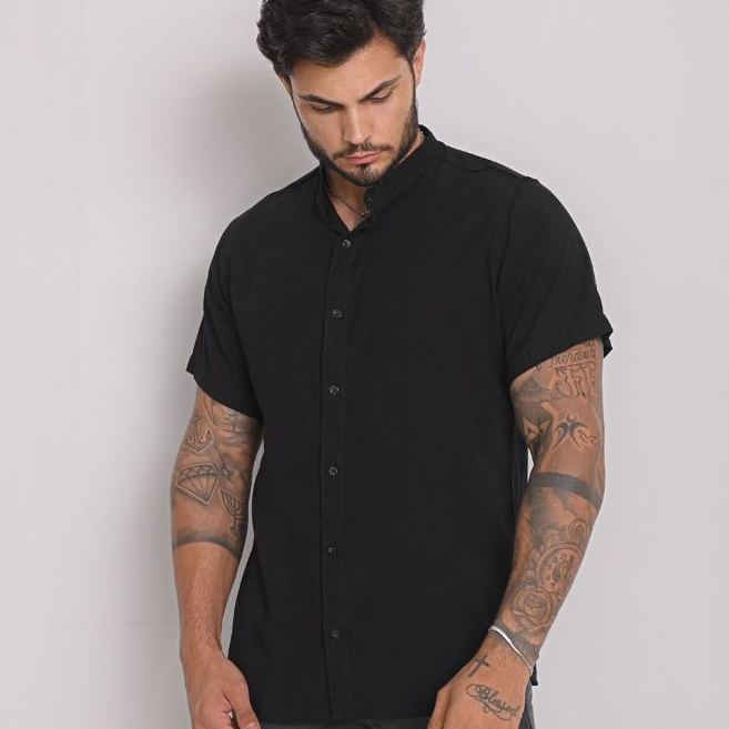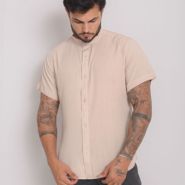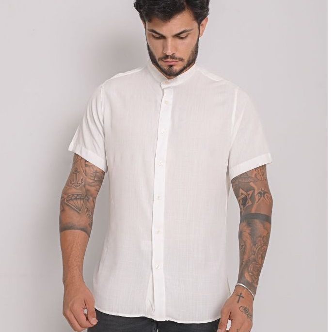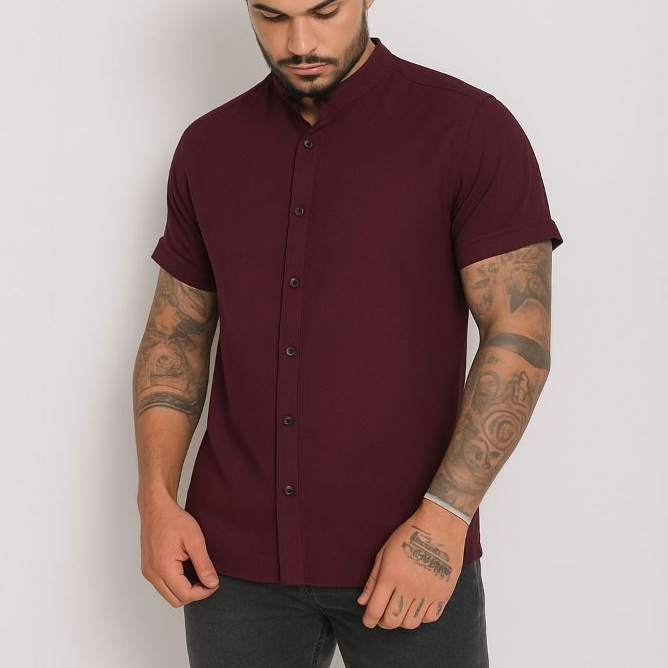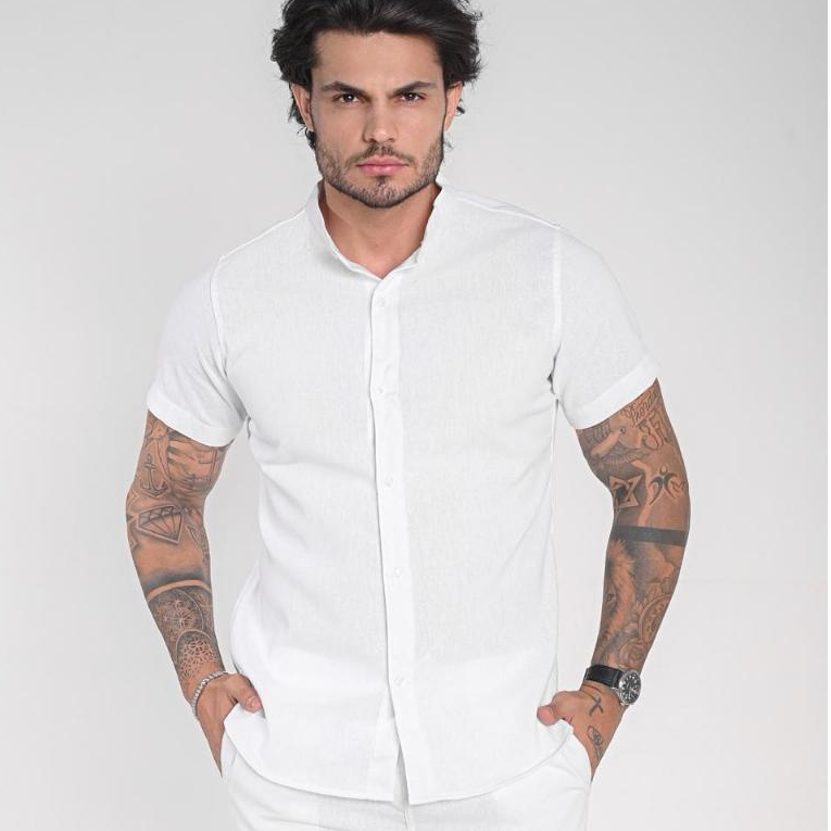 Camisa Masculina Manga Curta Modelagem Slim Exclusiva Gola Padre Luxo Viscolinho