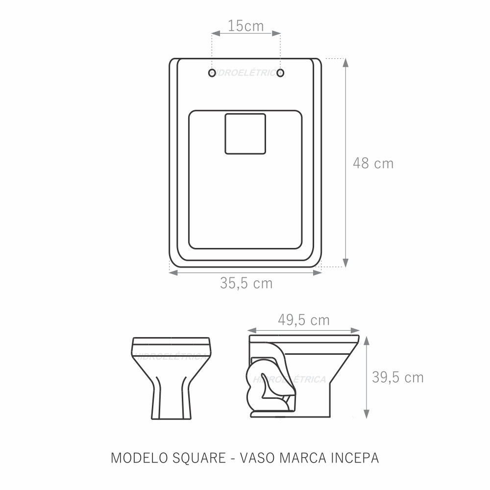 Tampa de Vaso Square Cinza Platina Bacia Incepa MDF Laqueado