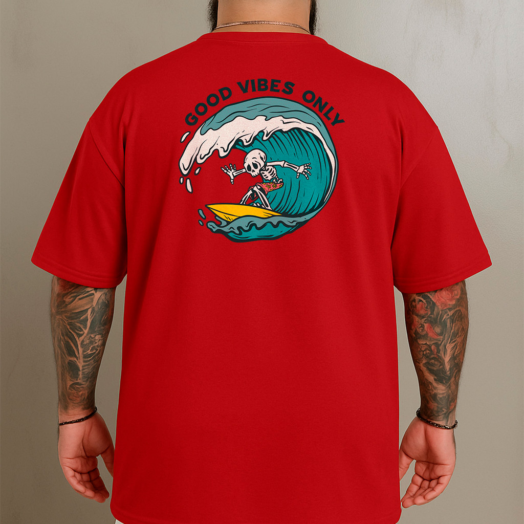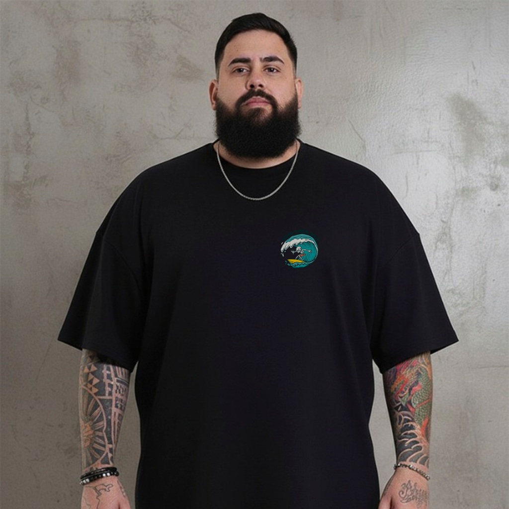 camiseta plus size estampada de algodão penteado masculina caveira surf