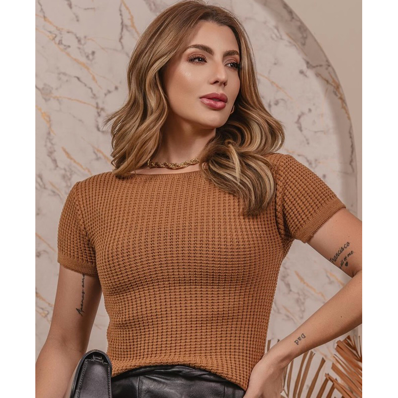 Blusa Modal Feminina Premium Tricot Leve Manguinha Gola Redonda – T-Shirt Elegante Básica