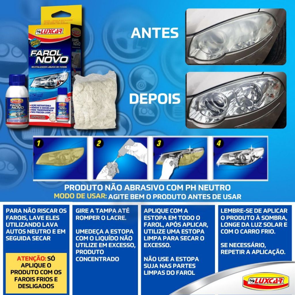 Revitalizador Líquido Farol Novo Luxcar para Faróis e Superfícies de Acrílico e Policarbonato