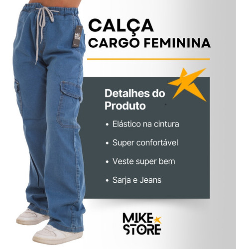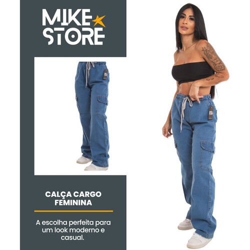Calças Larga Cargo com Bolso Lateral Moda Feminina Street Sk8 Urbano Larga Confortável