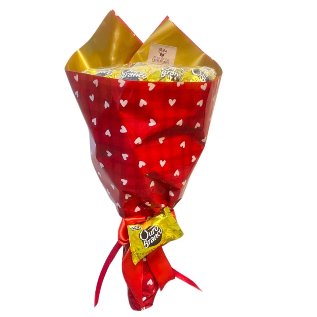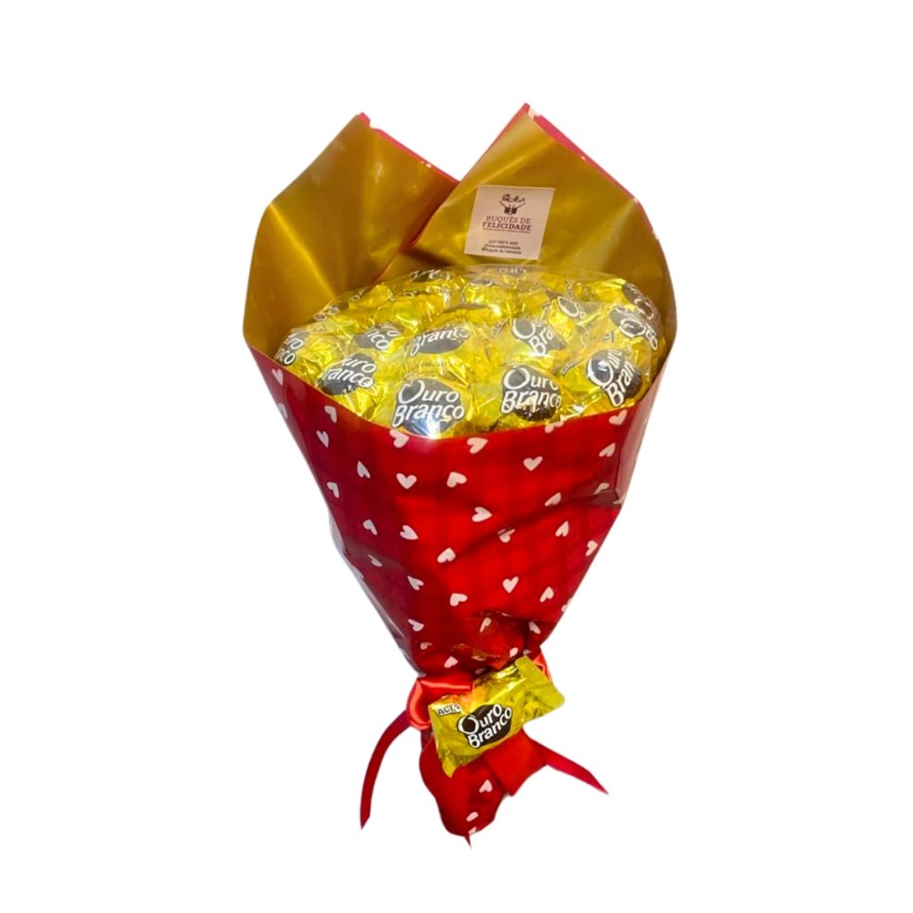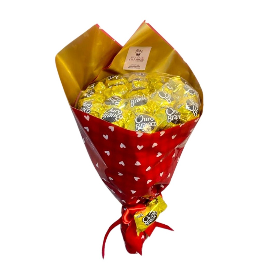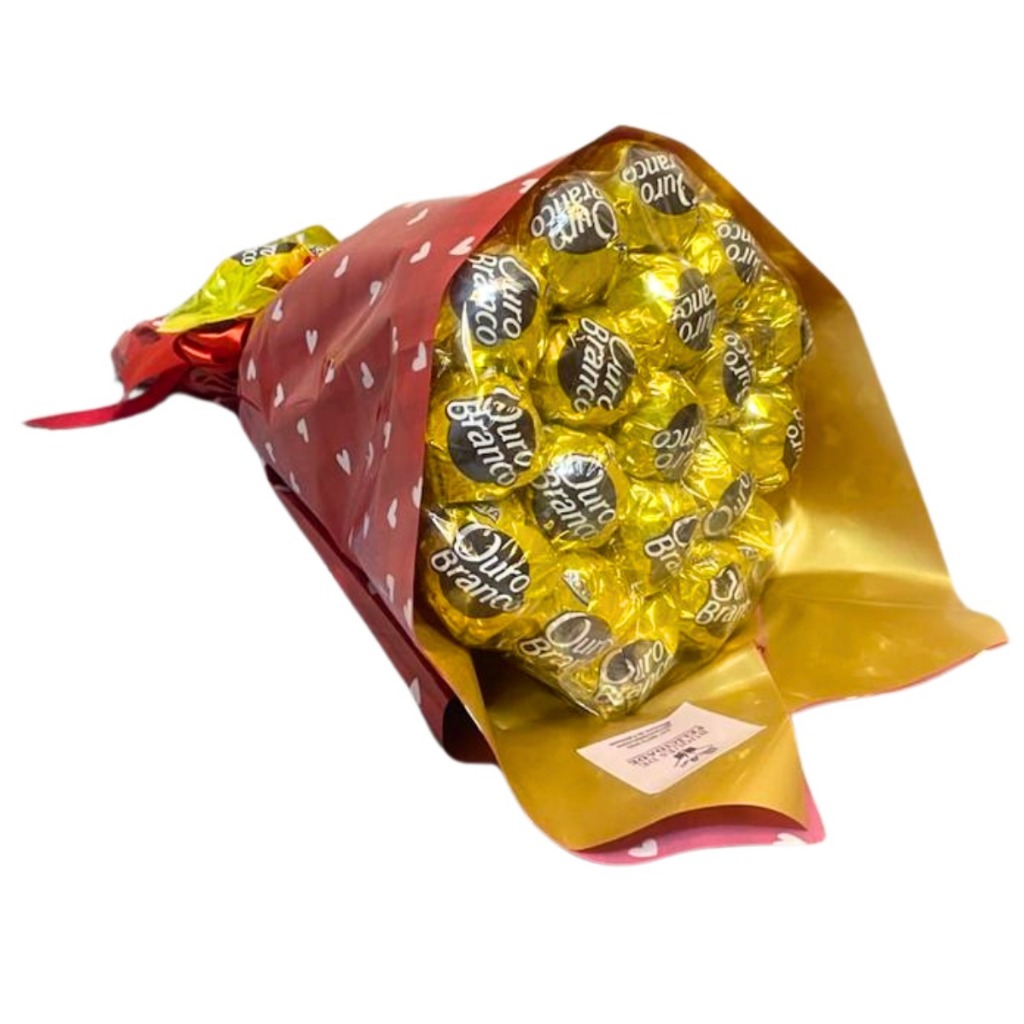 Buquê Buque Ouro Branco 50 Bombons Chocolate Presente Namorados