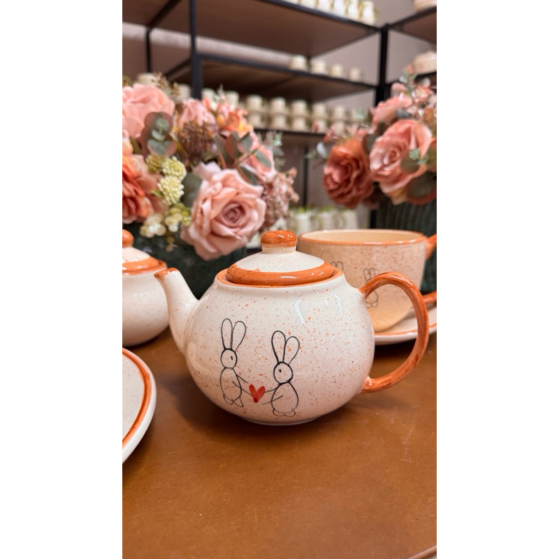 Bule Cêramica Pequeno 600ml Para Café e Chá Desenhado á Mão