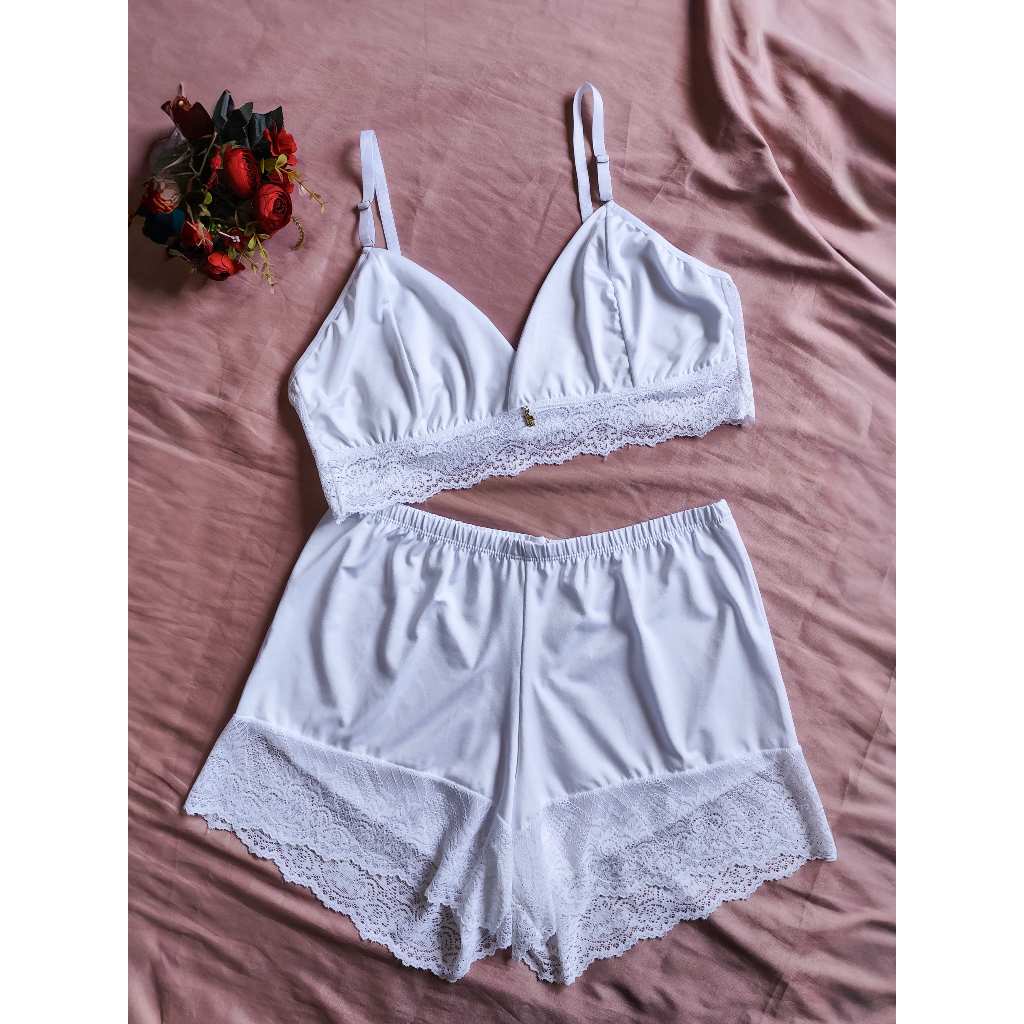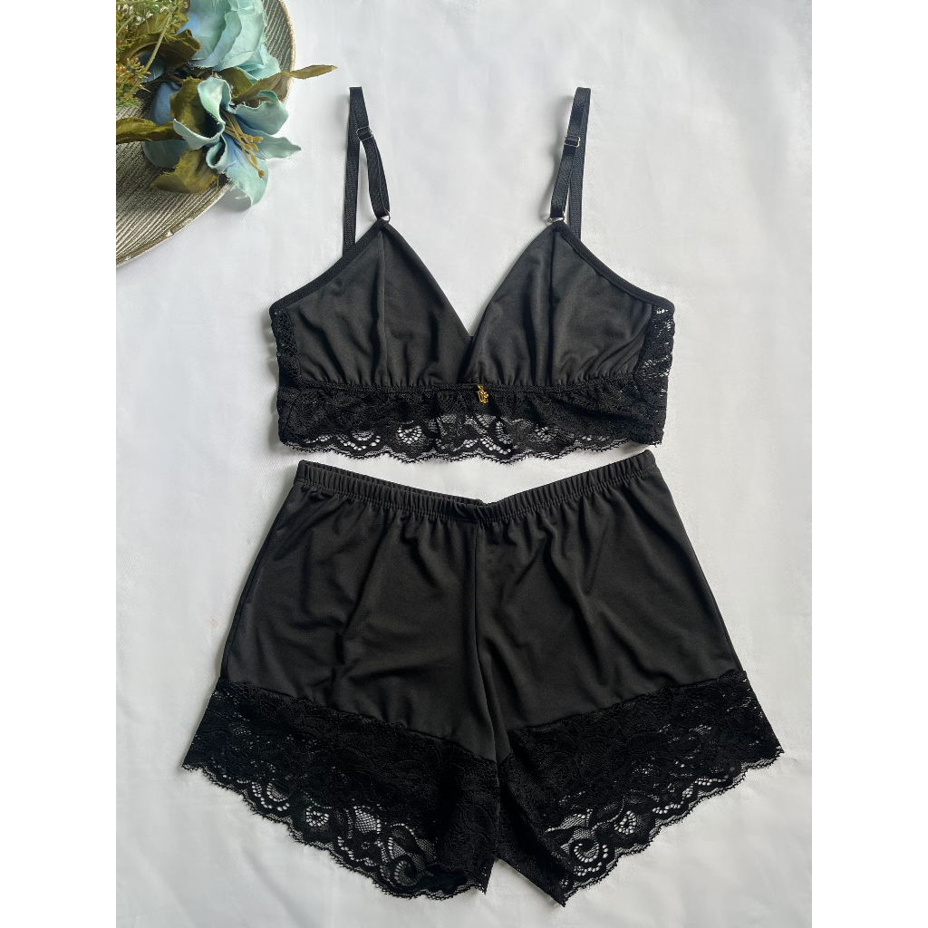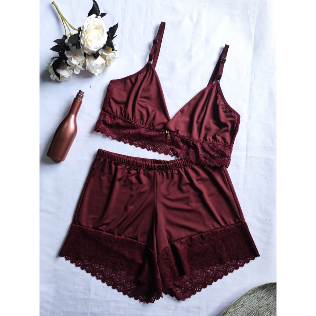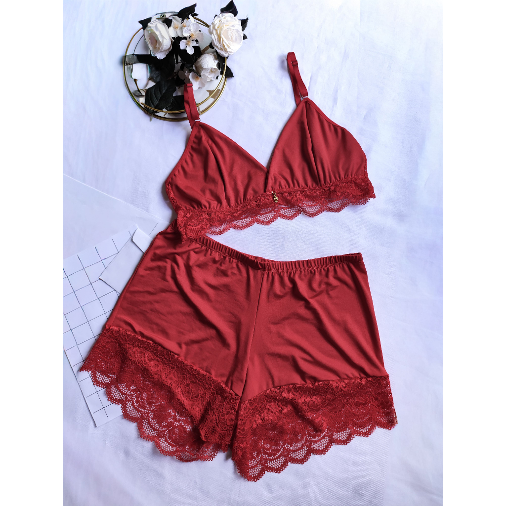 Baby Doll Com Borda Rendada; Feminino Adulto Microfibra e Renda Sensual