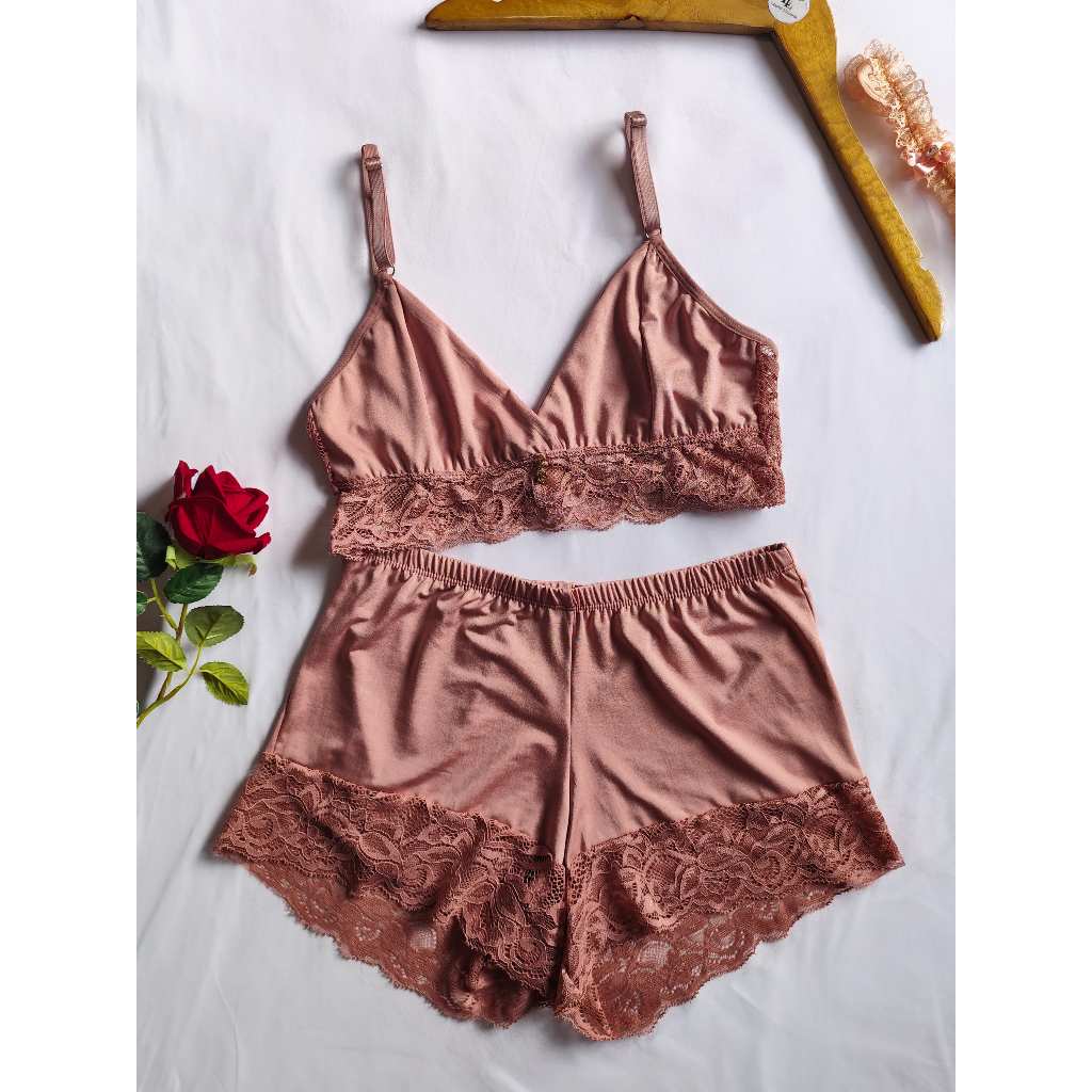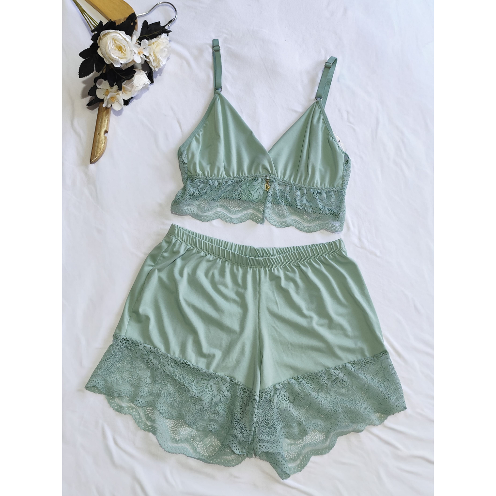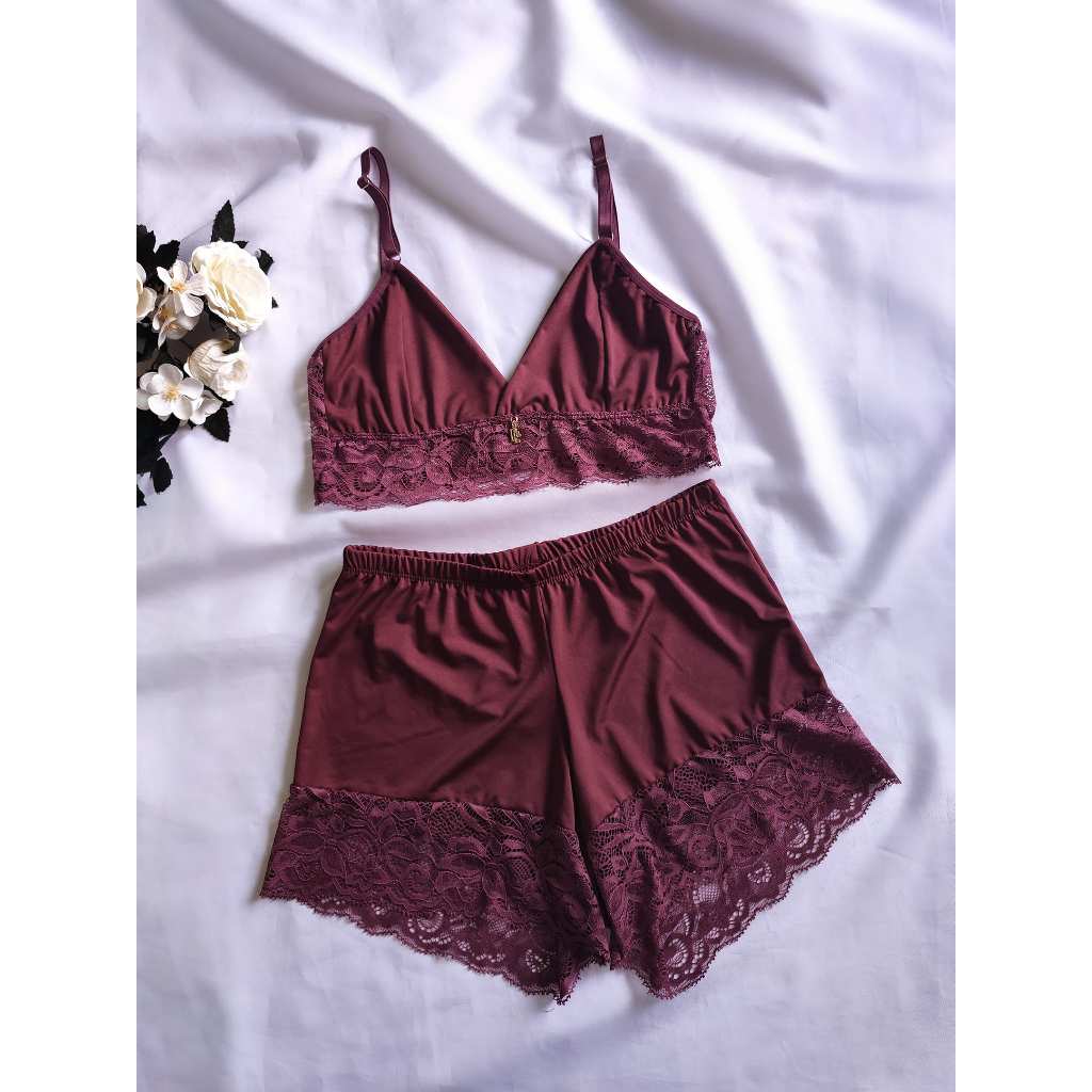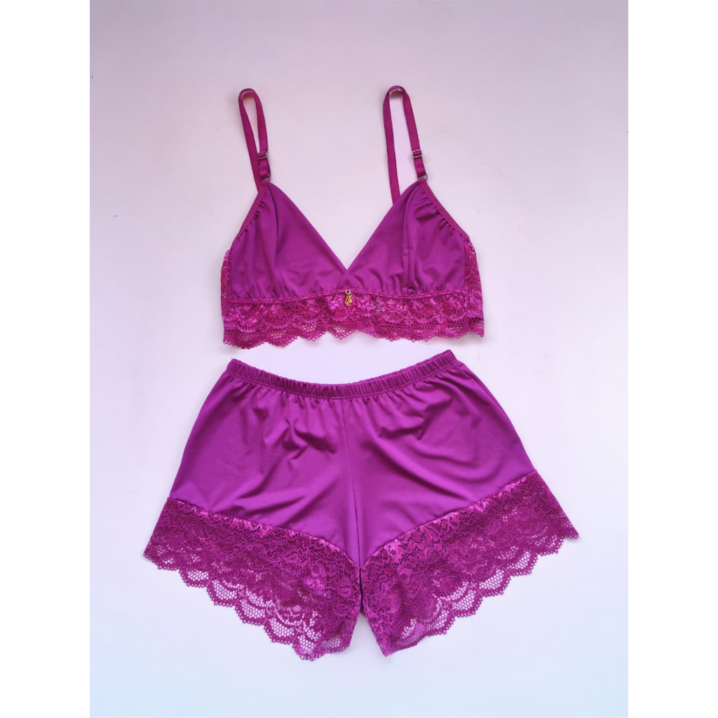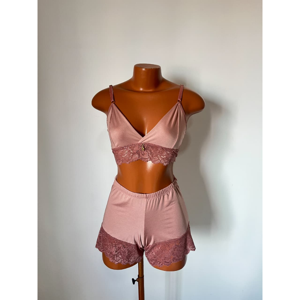 Baby Doll Com Borda Rendada; Feminino Adulto Microfibra e Renda Sensual