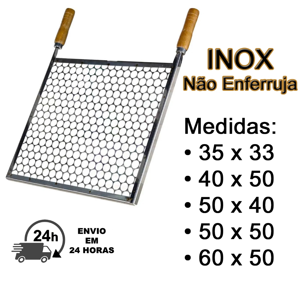 Grelha Para Churrasqueira Feita em Inox Não Enferruja Reforçada Moeda 35x33 40x50 50x40 50x50 60x50