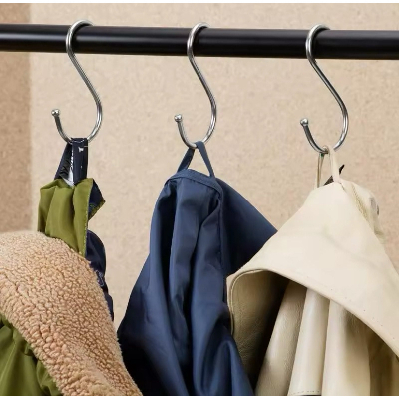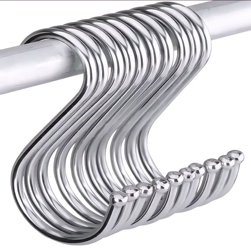 Kit 10 Ganchos Aço Inox Multiuso Tipo S Utensílios Suporte Cozinha Roupa Resistente e Organizador