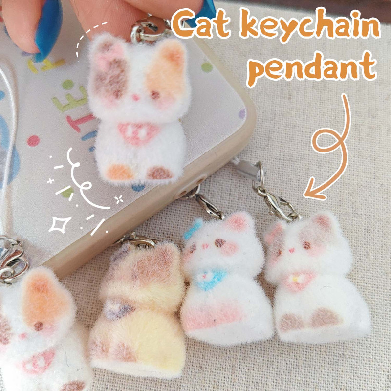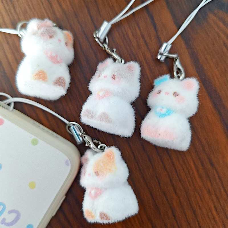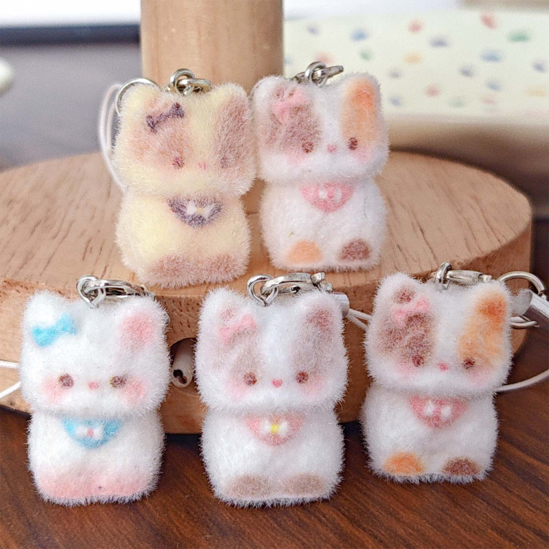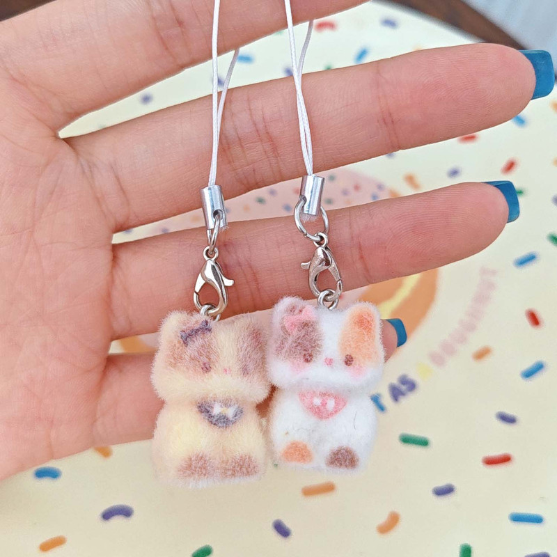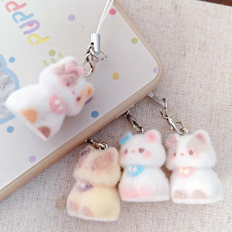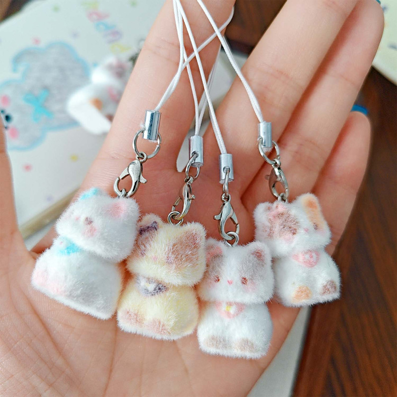 5 Peças De Amuletos De Telefone De Gato Flocado De Resina Fofa-Chaveiro De Mini Gatinho Kawaii-Corrente De Y2K Coreano-P