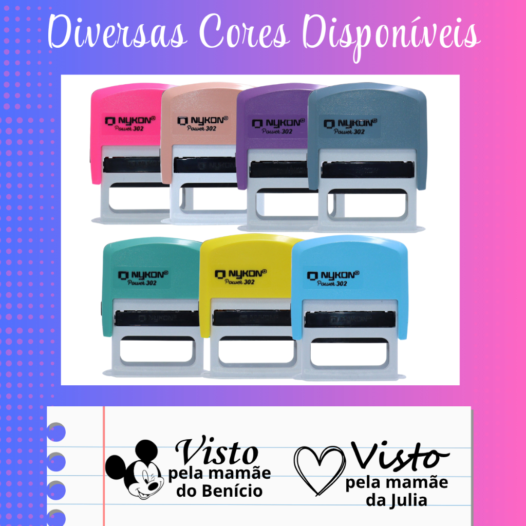 Carimbo Visto pela mamãe Automático vários modelos, cores e desenhos