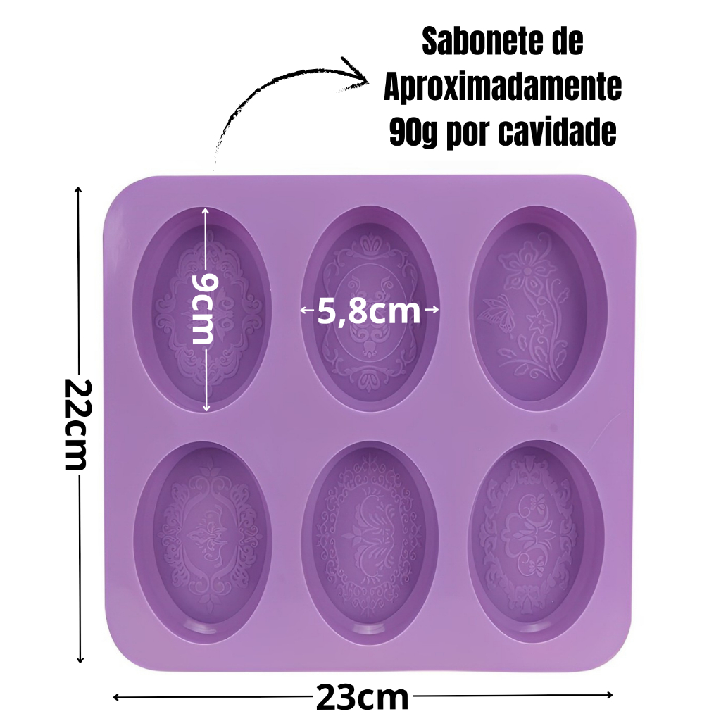 Forma Molde De Silicone Para Fazer Sabonete 90g Formato Oval com 6 Cavidades