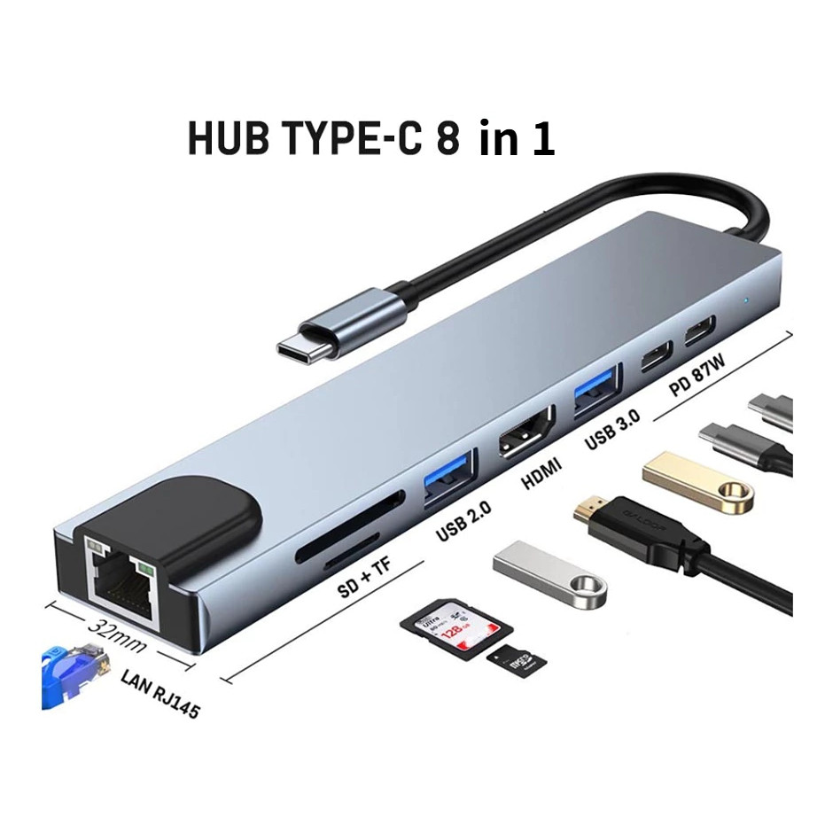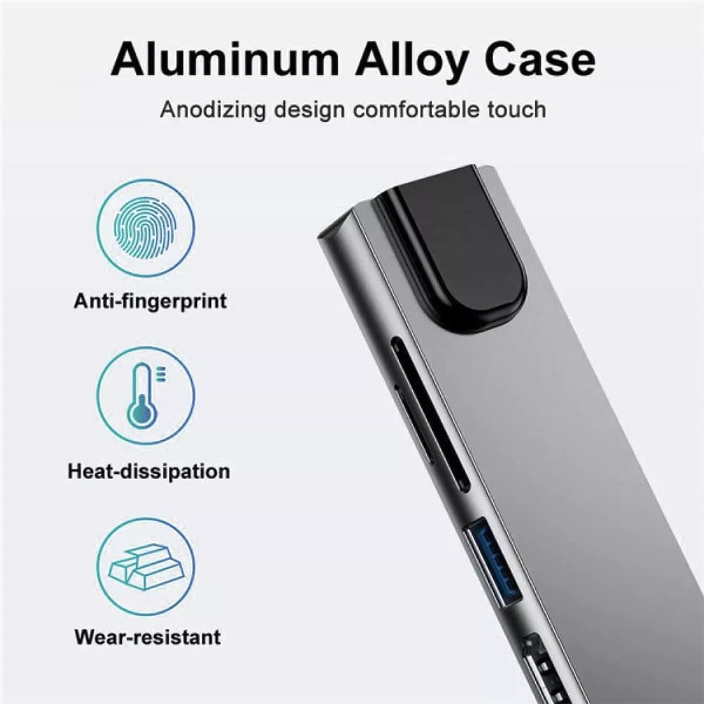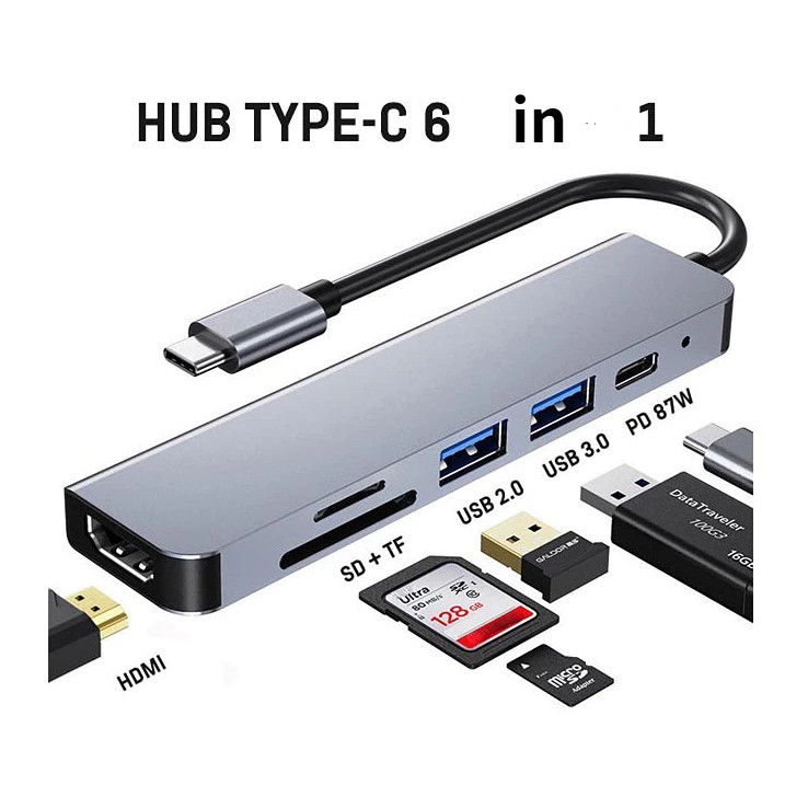 Hub USB tipo C para HDMI para MacBook Laptop PC Telefone SD TF PD RJ45 6 em 1/7 em 1/8 em 1