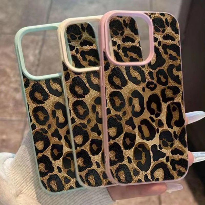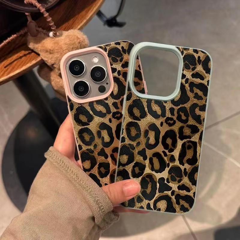 INS Marrom Leopardo Impressão Caso De Telefone Para iPhone 16 Pro Max 15 14 Plus 13 12 11 XR XS 16 Lichee Padrão Macio T