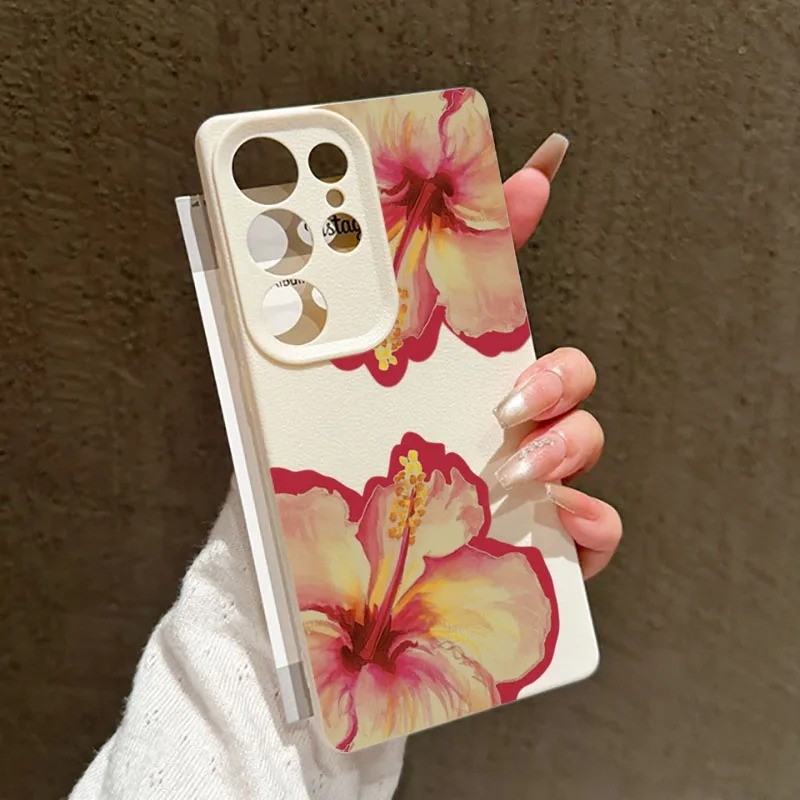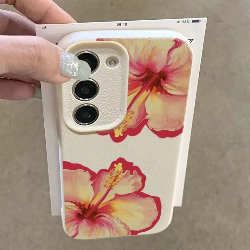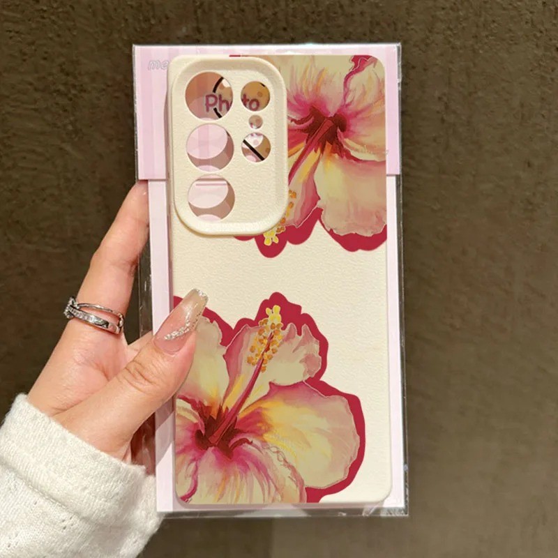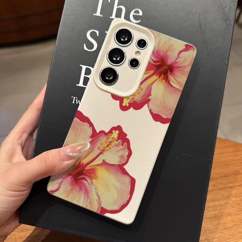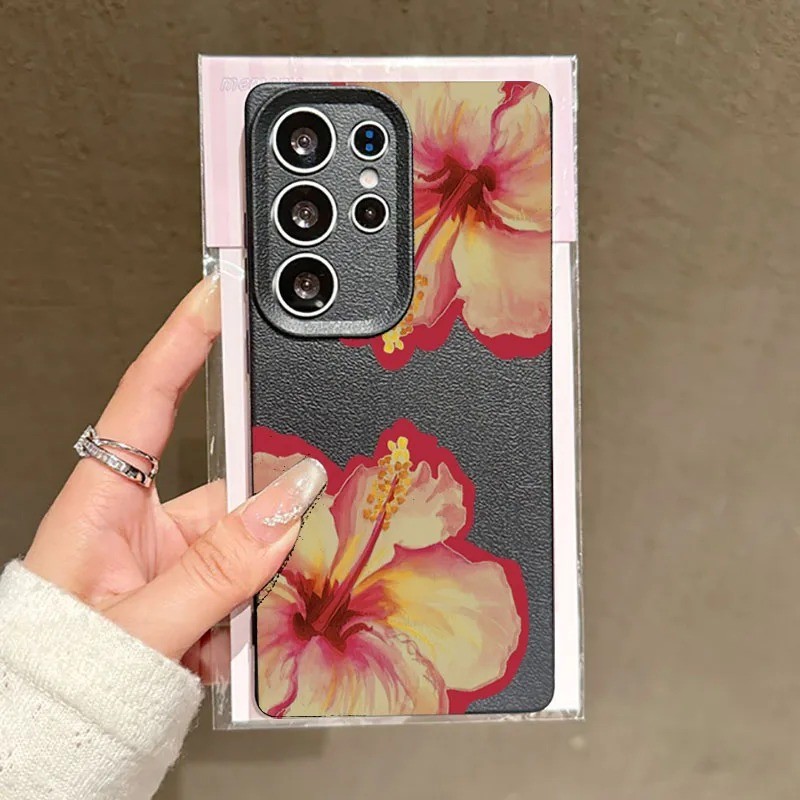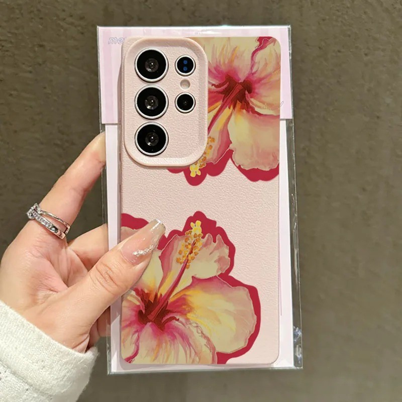 Rosa Hibisco Lichia Caso De Telefone Para Samsung S24 S25 Ultra S23 FE S23 S22 S21 Plus A55 A34 A15 A35 A52 A54 A16 Capa