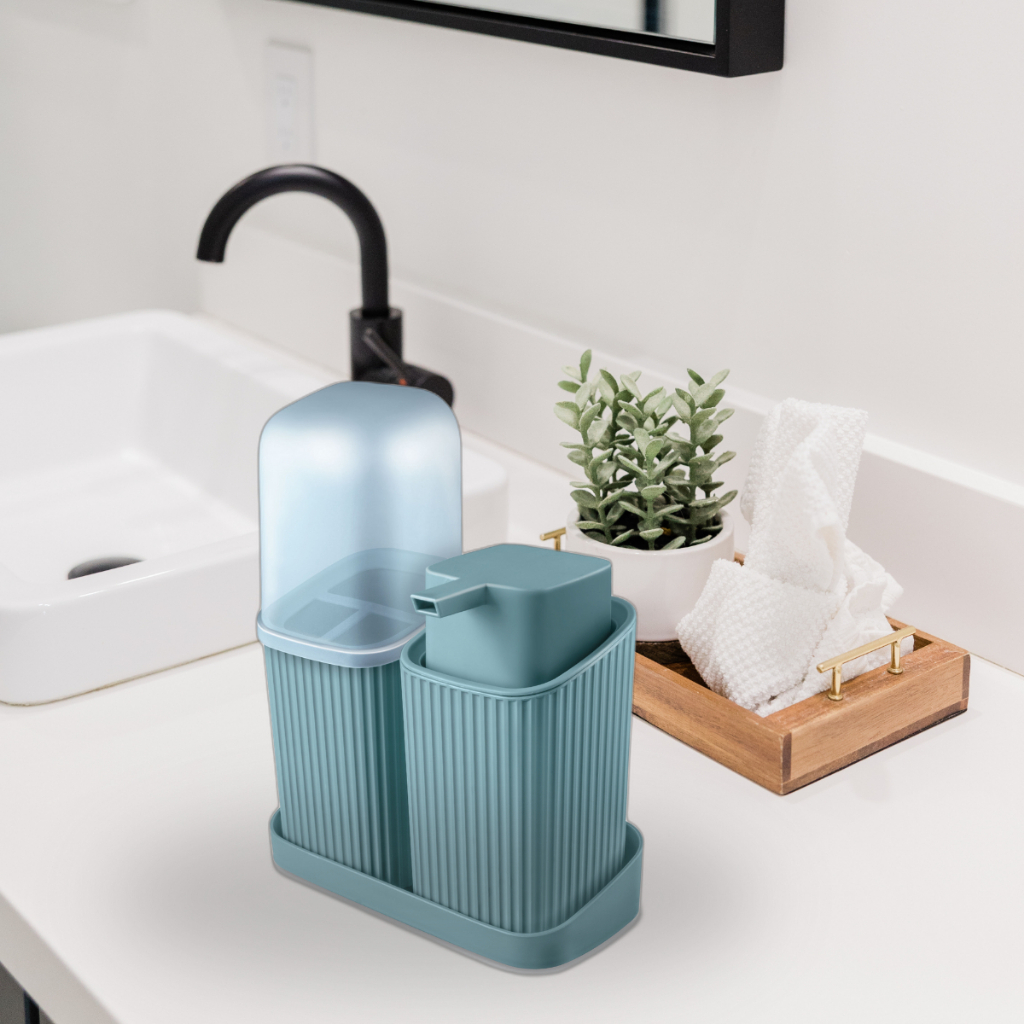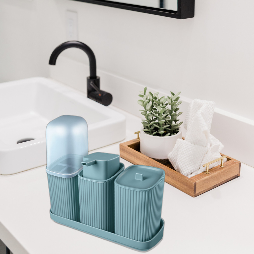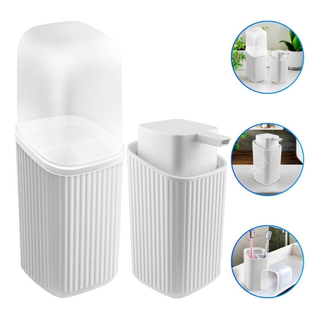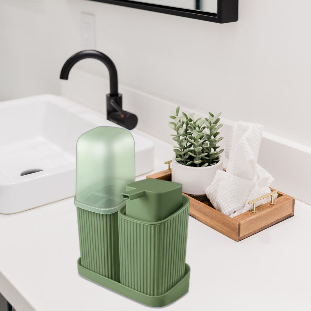 Kit Banheiro Lavabo 3 ou 2 Peças Com Bandeja Porta Escova Algodão e Sabonete Líquido 400ML Decoração Organização