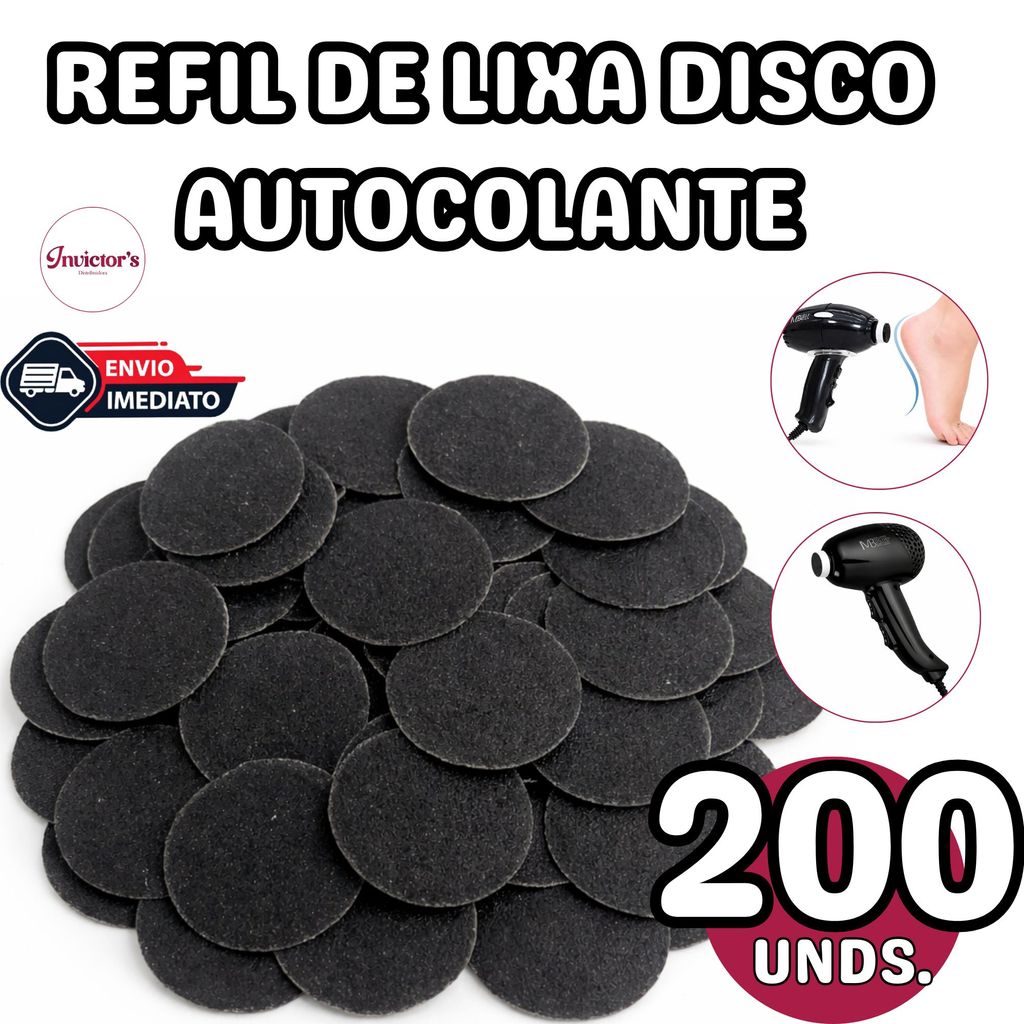 200 Lixas Disco Moeda Pedicure Preta Adesiva Disco 200 Unidades