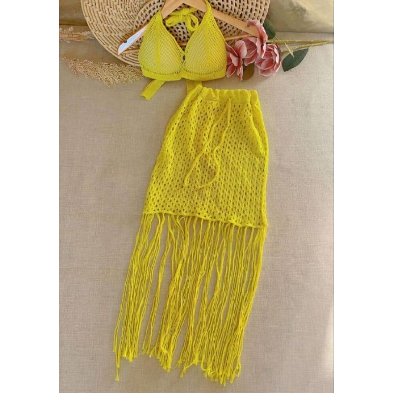 conjunto liso #10-13 de saida praia top com bojo vem saia com franja ,linda mais,moda feminina