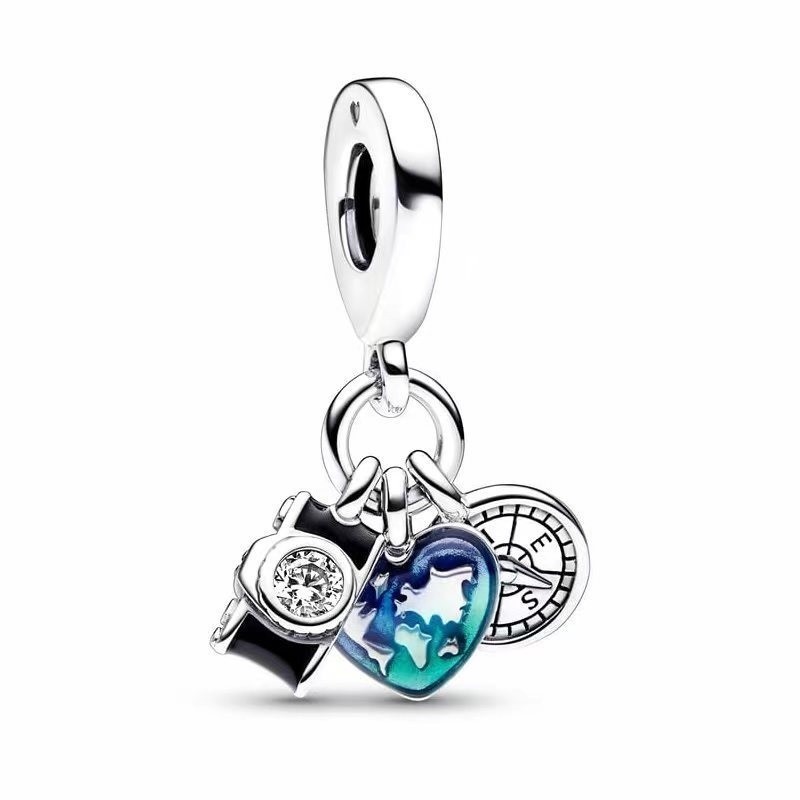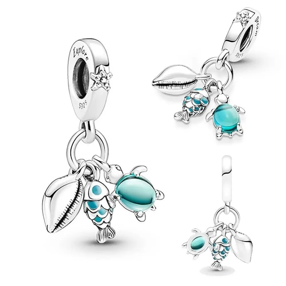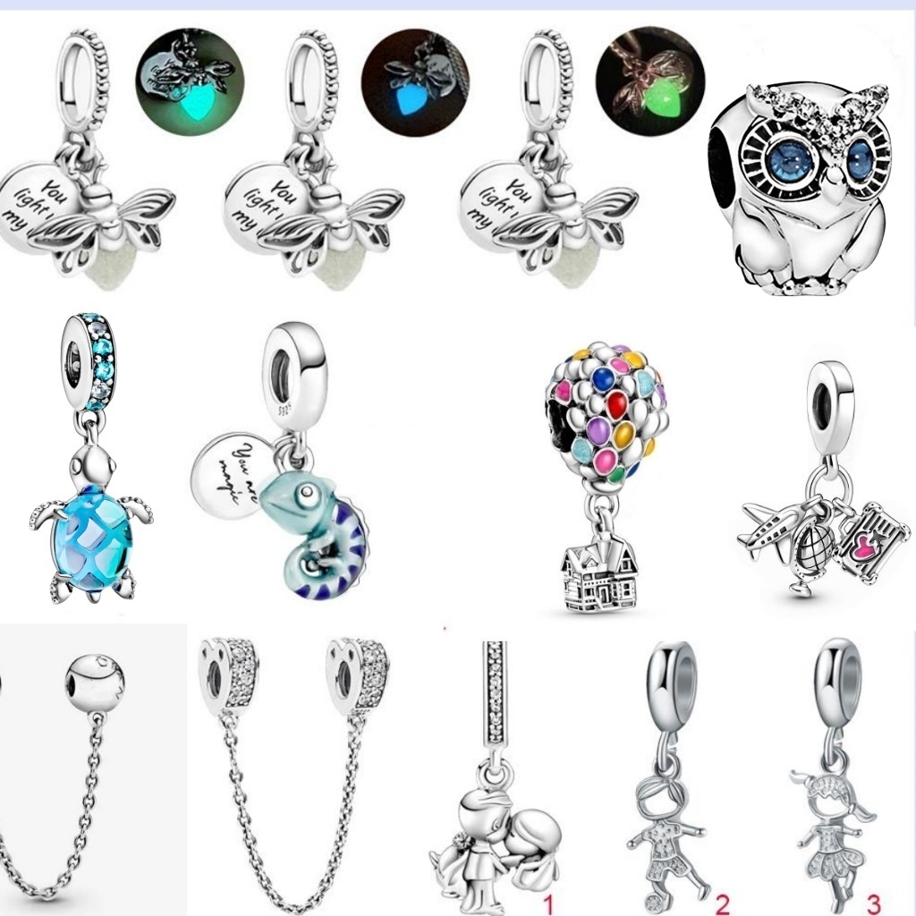 Firefly Jóias Luminosa Azul 925 Prata Pingente Pulseira Charme Tartaruga Coruja Pingente Diamante Coração