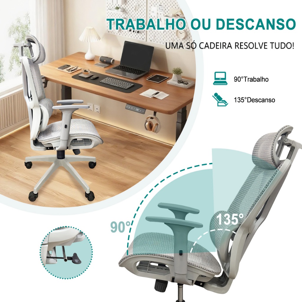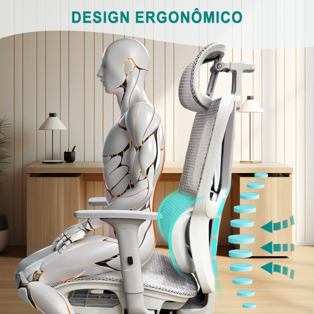 Python Fly Cadeira Ergonômica Ajustável – Braço 6D Cromado, Apoio Lombar, Ideal para Escritório e Estudo 150KG