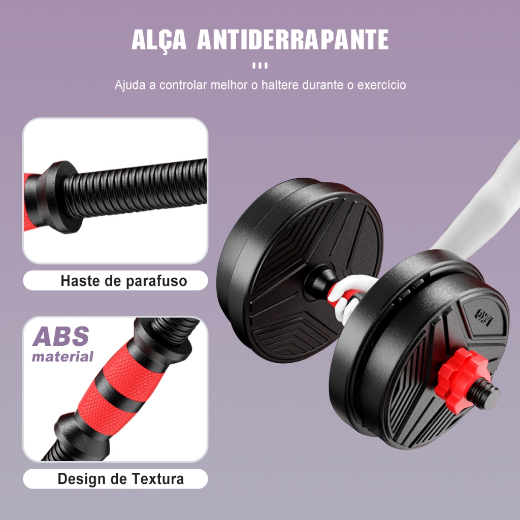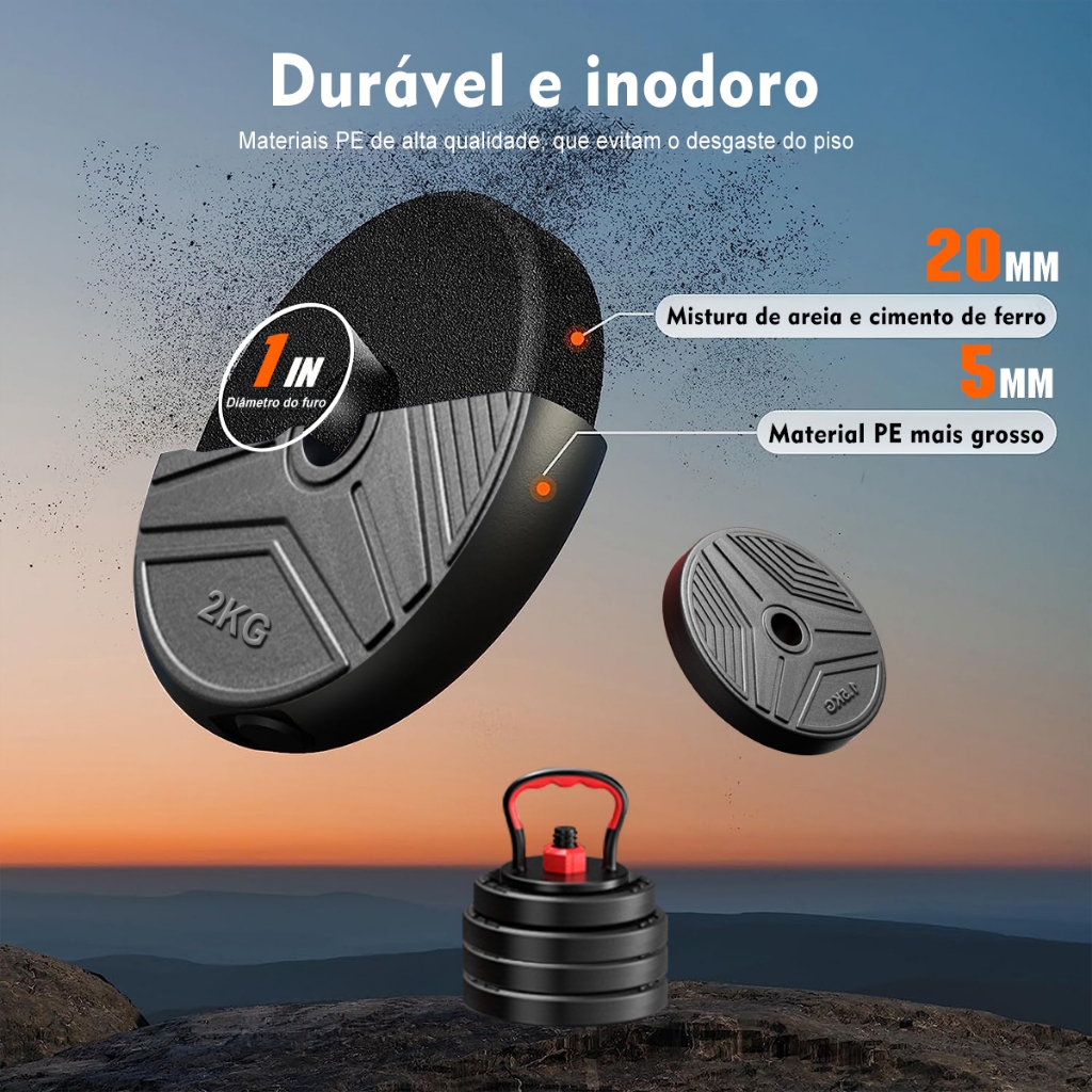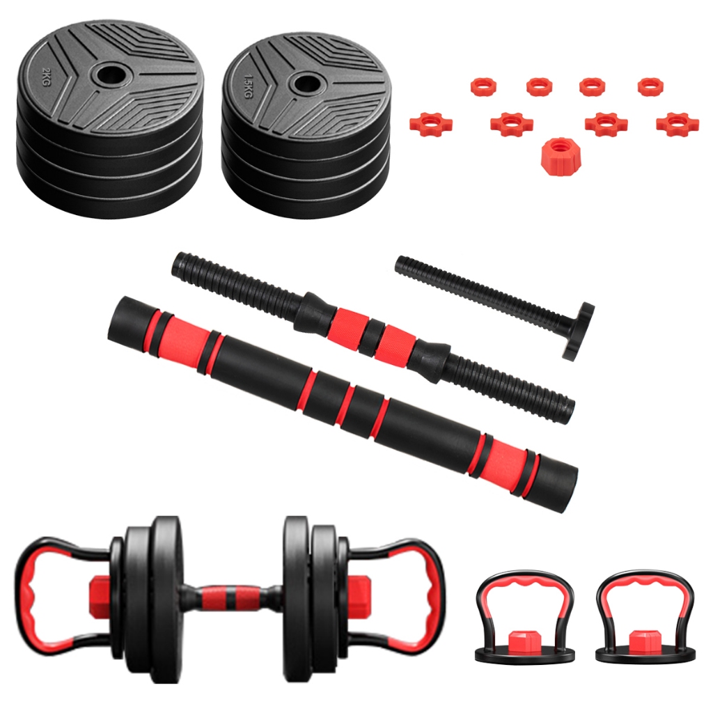 Kit 6 Em 1 Musculação 15kg Halteres Anilhas Barras Kettlebell Ajustáveis Academia Treino em Casa