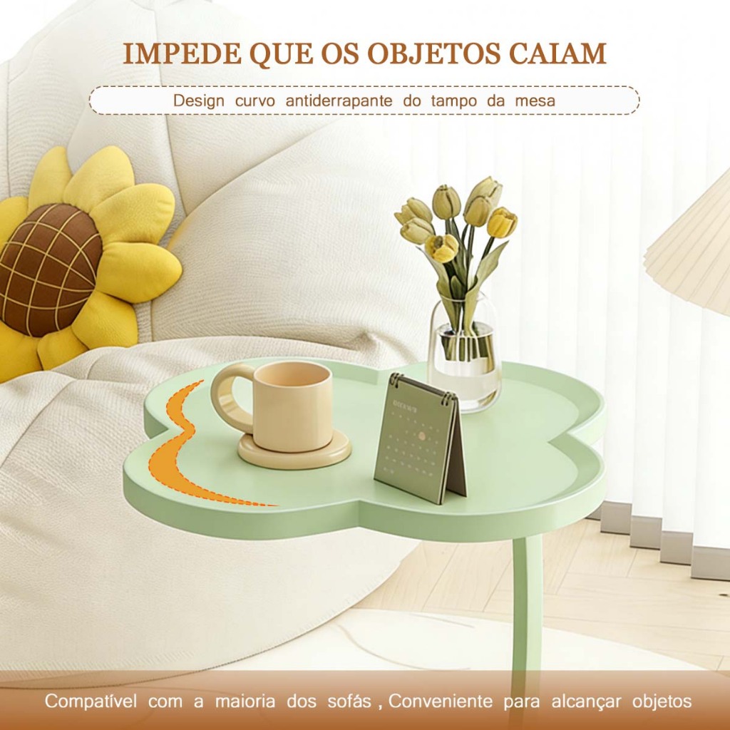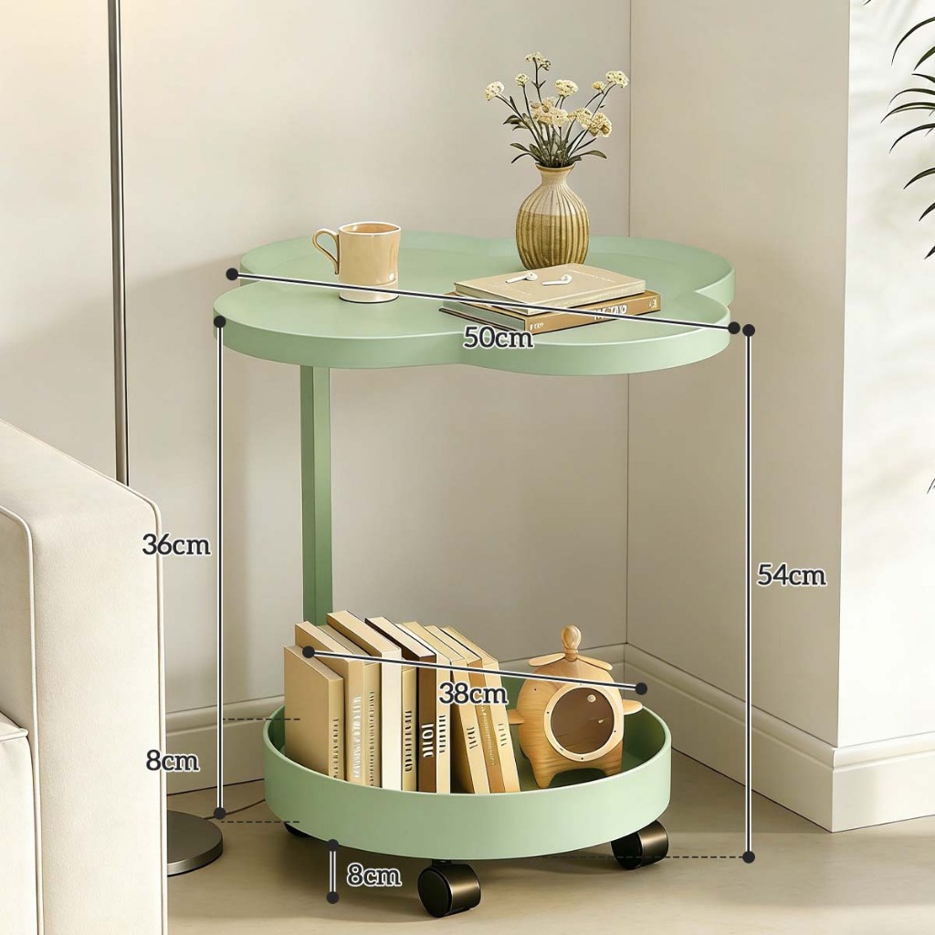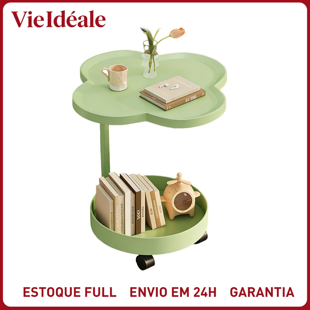 Mesa Lateral Trevo com Rodinhas 2 Tampos Moderna em Ferro Premium para Sala e Quarto
