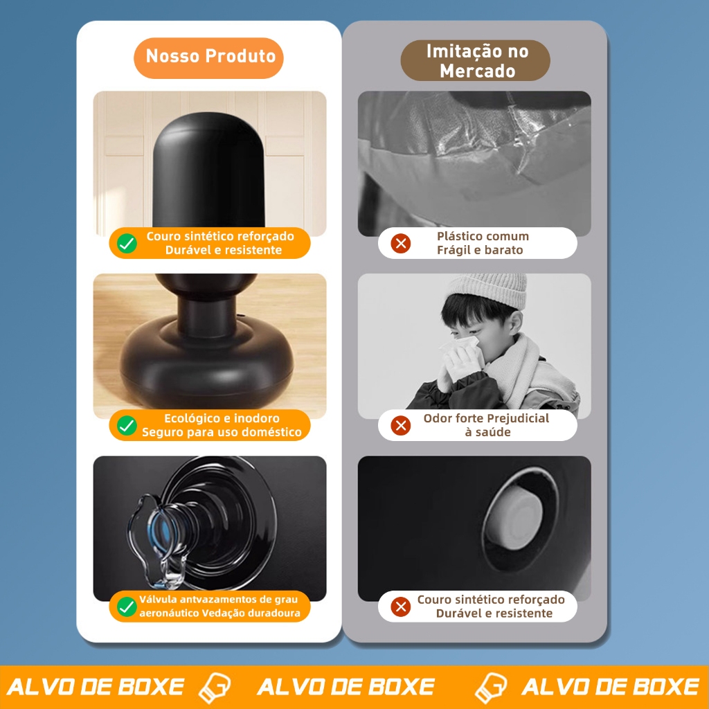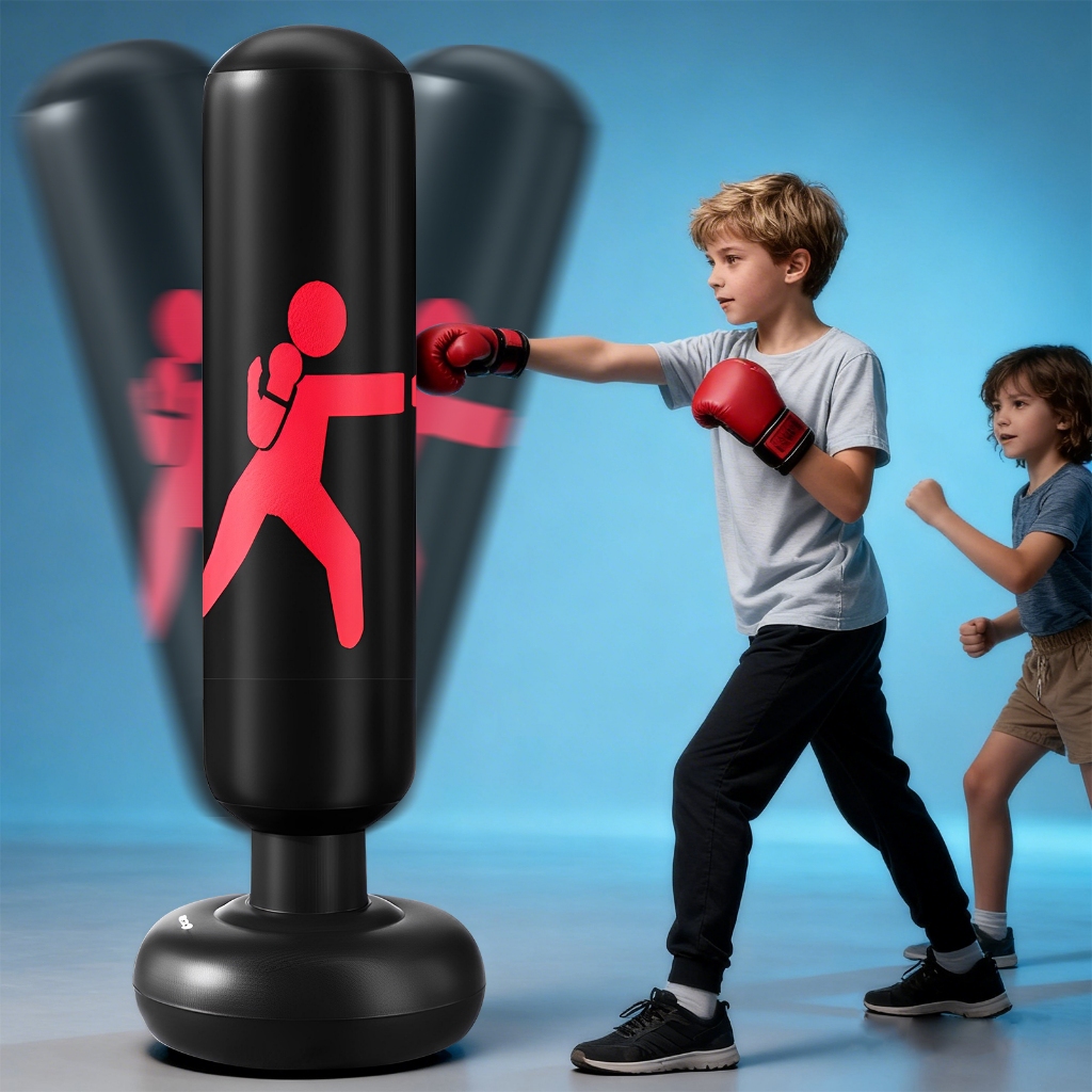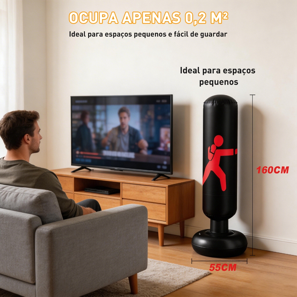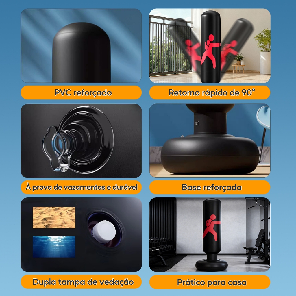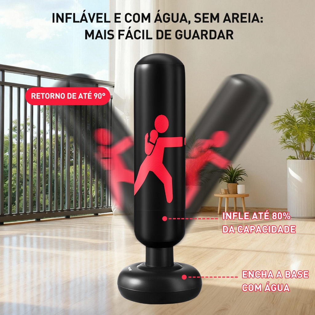 Saco de Boxe Inflável Vertical 1,60m Unissex - João Bobo Reforçado para Treino de Luta Infantil e Adulto Fitness