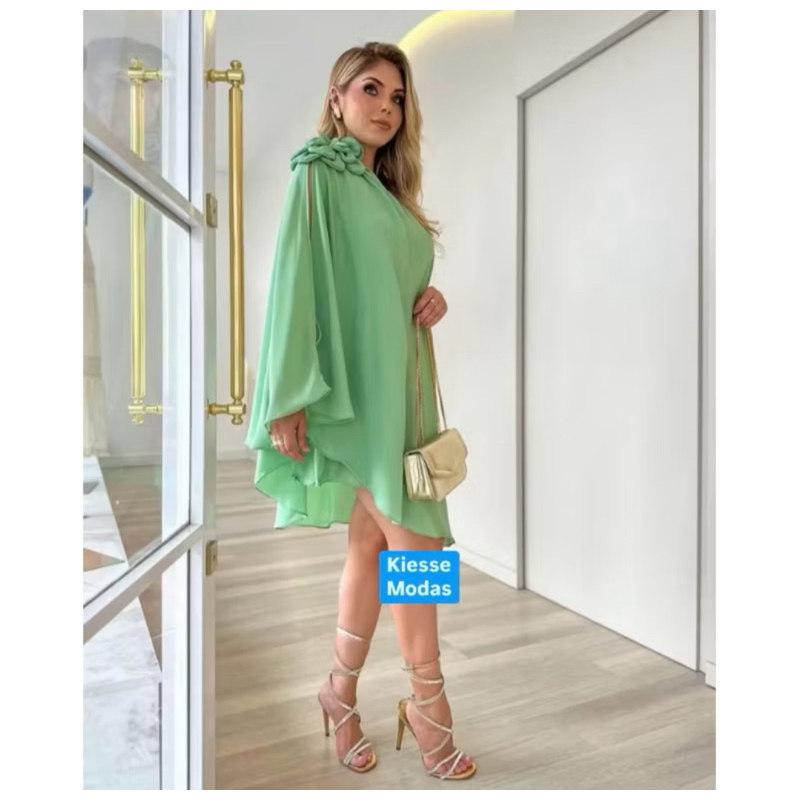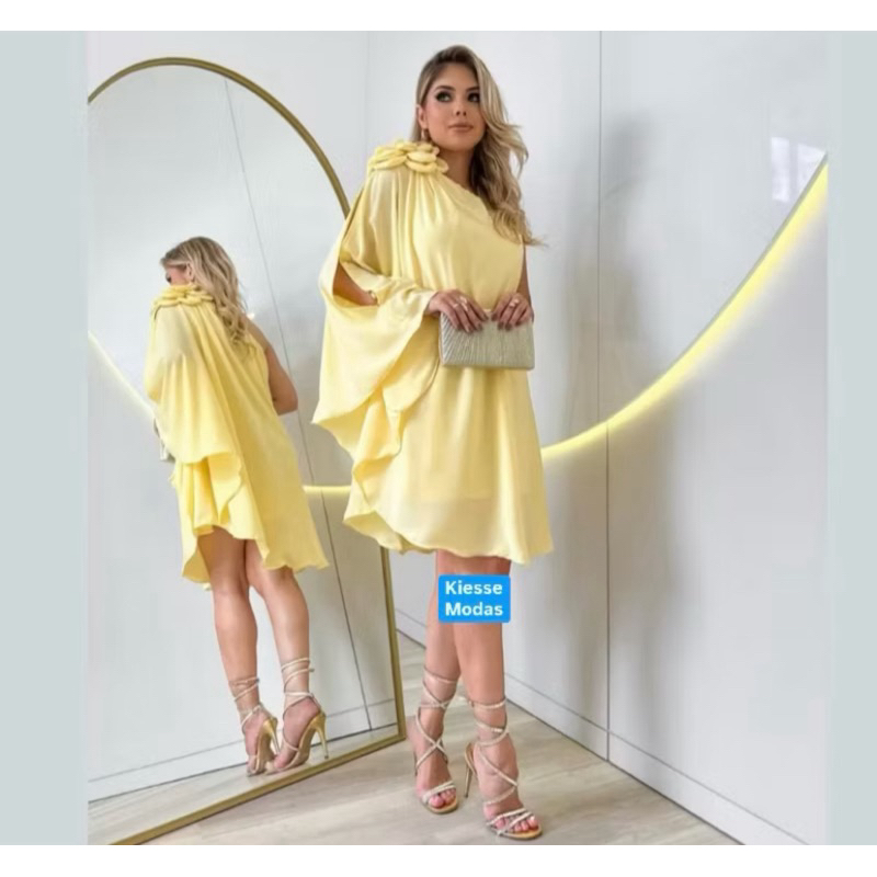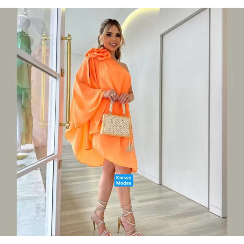 Vestido Feminino Macaquinho Elegante Casual Chic Ombro Manga Nula Soltinho Tendência Promoção