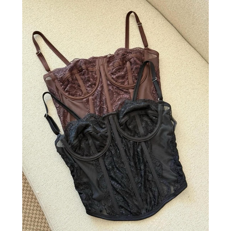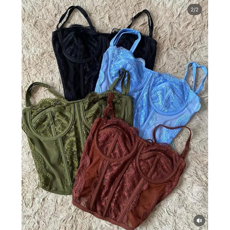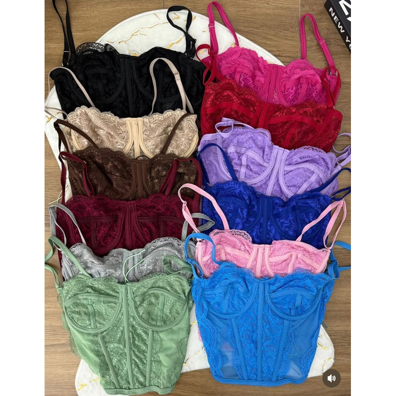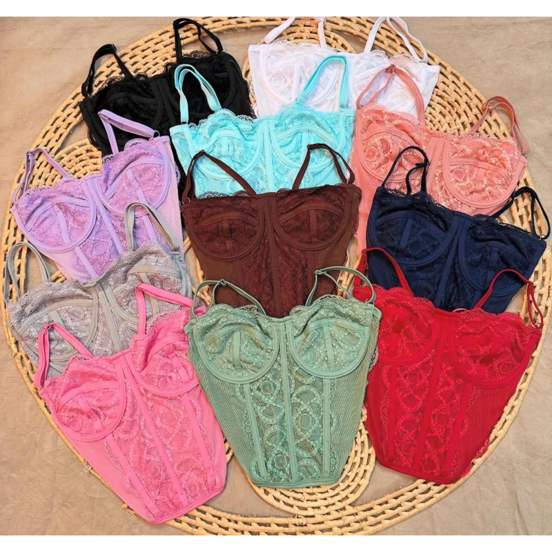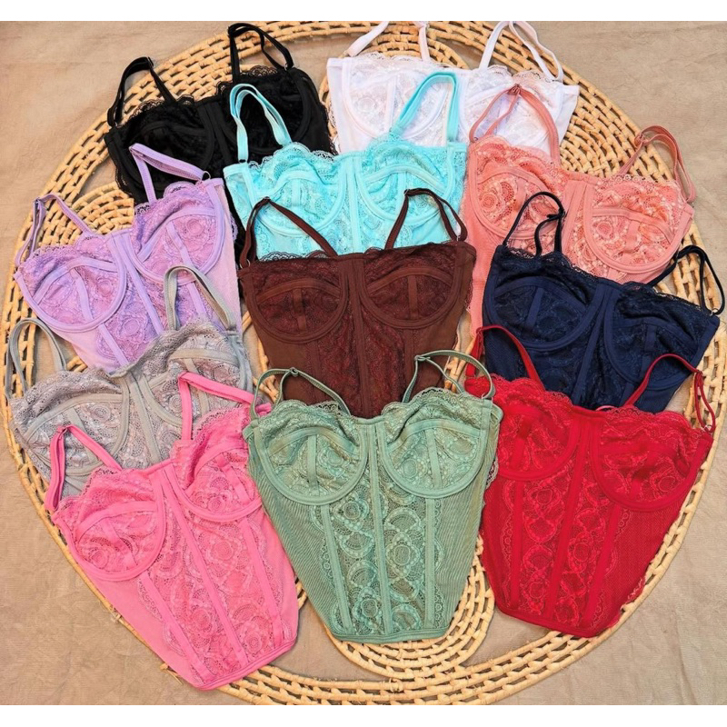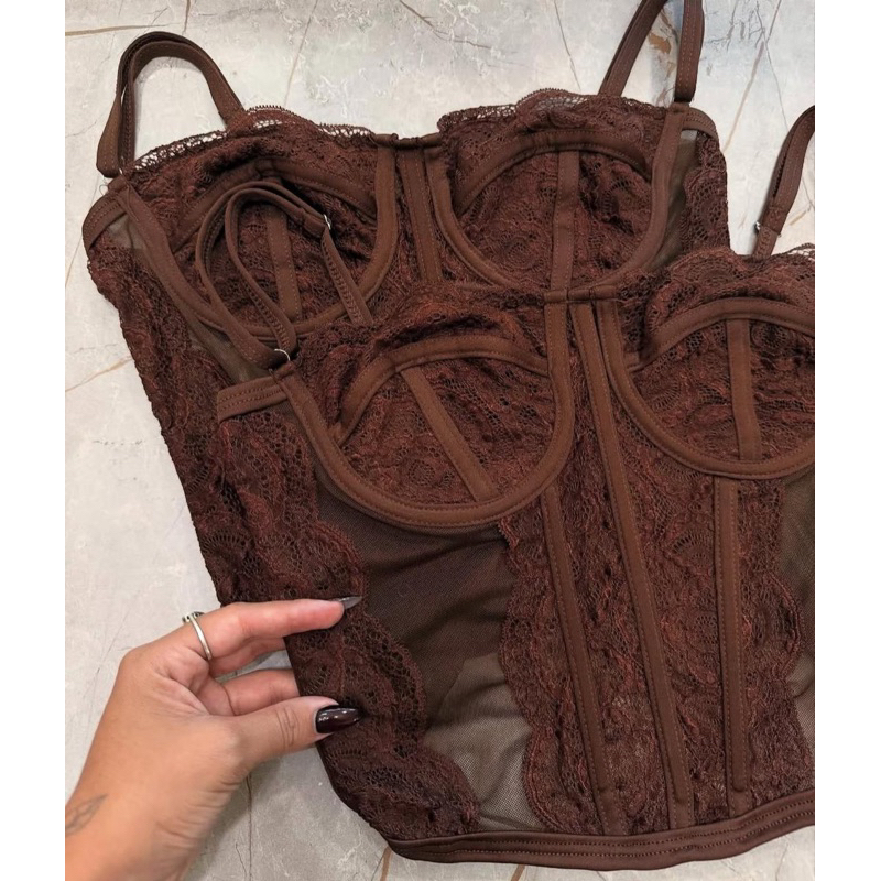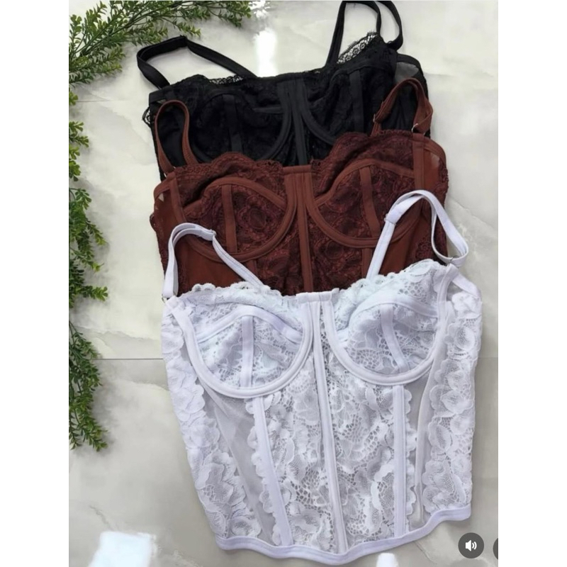Cropped Feminino Corset Renda Corselet Alça Regulagem Cropped Blusa